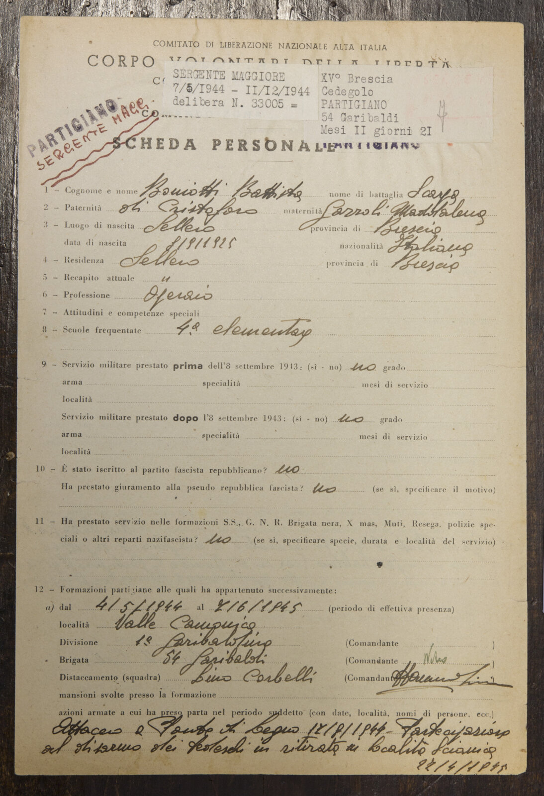 BONIOTTI BATTISTA - Partigiano e Sergente Maggiore
