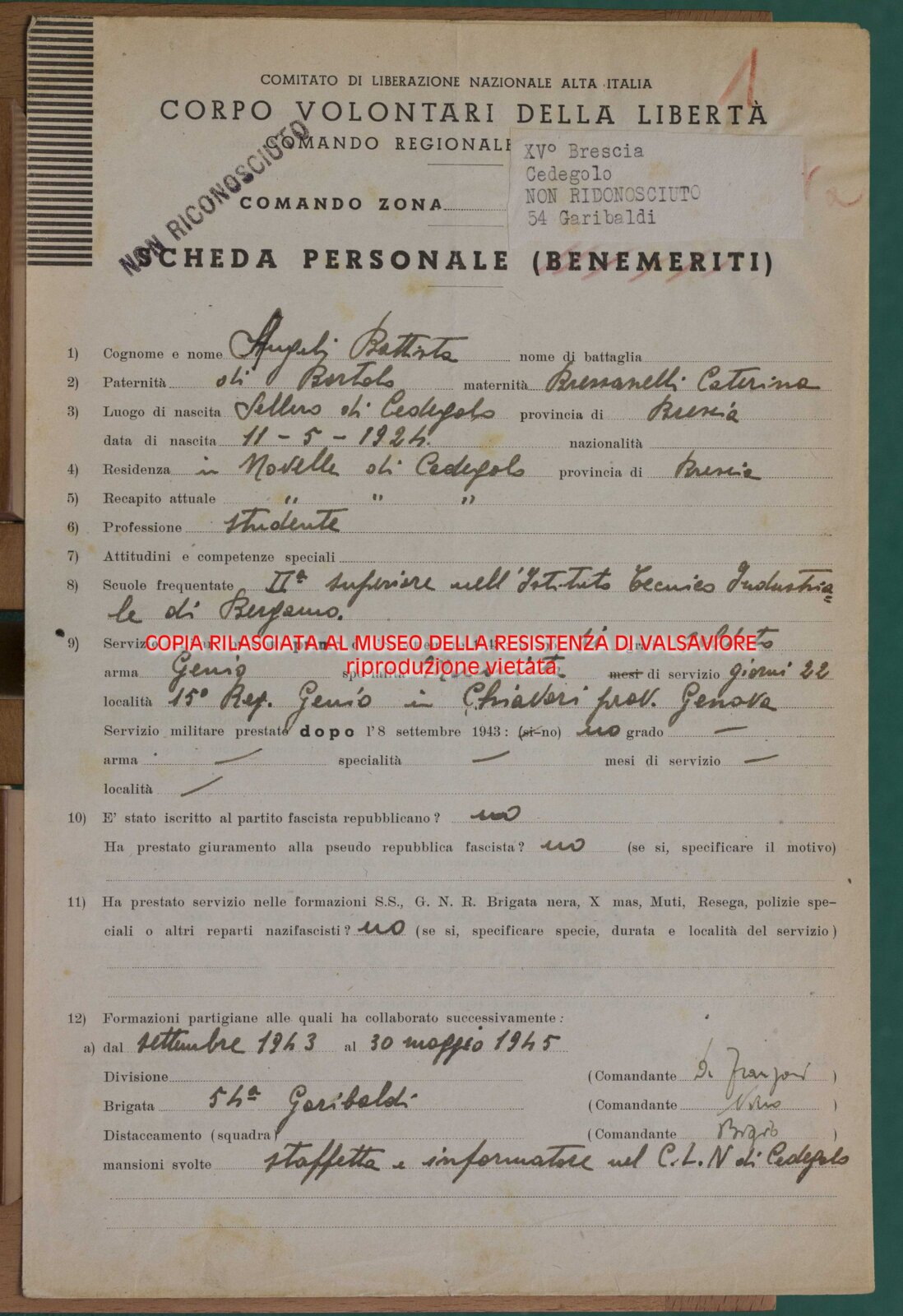 ANGELI BATTISTA- Partigiano non riconosciuto