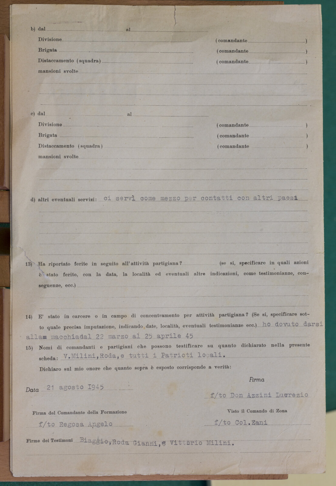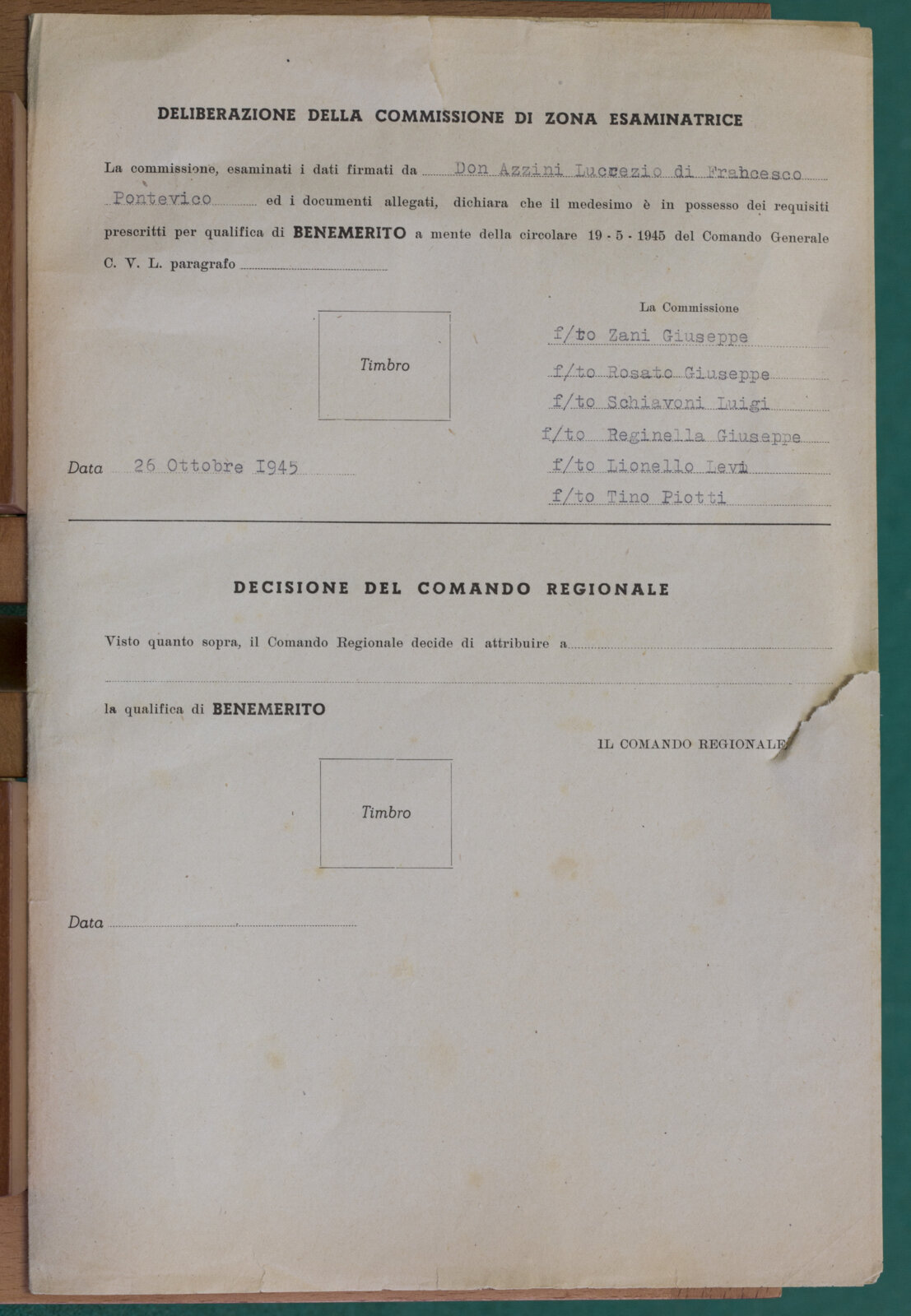 AZZINI DON LUCREZIO - Partigiano non riconosciuto