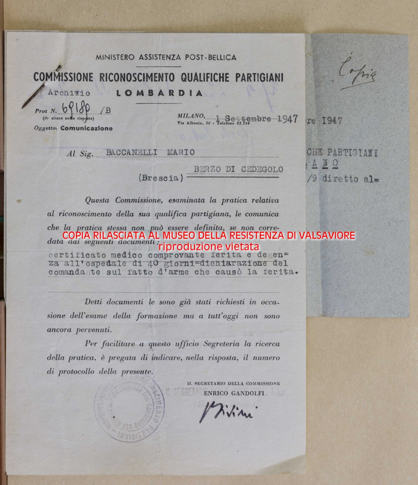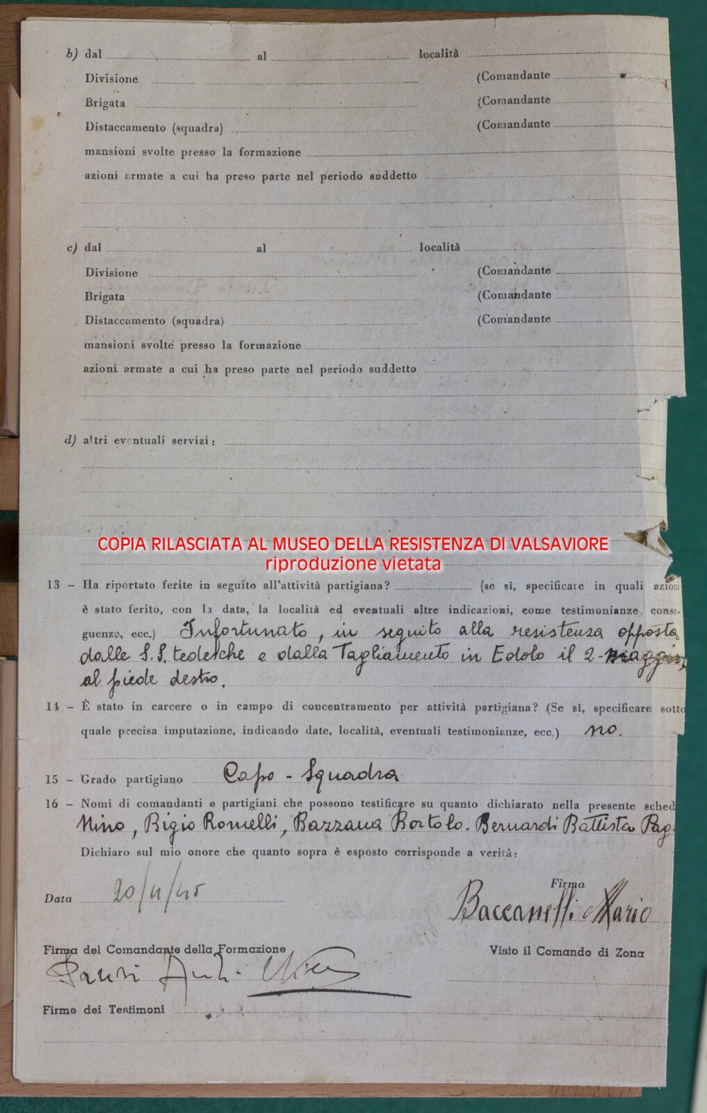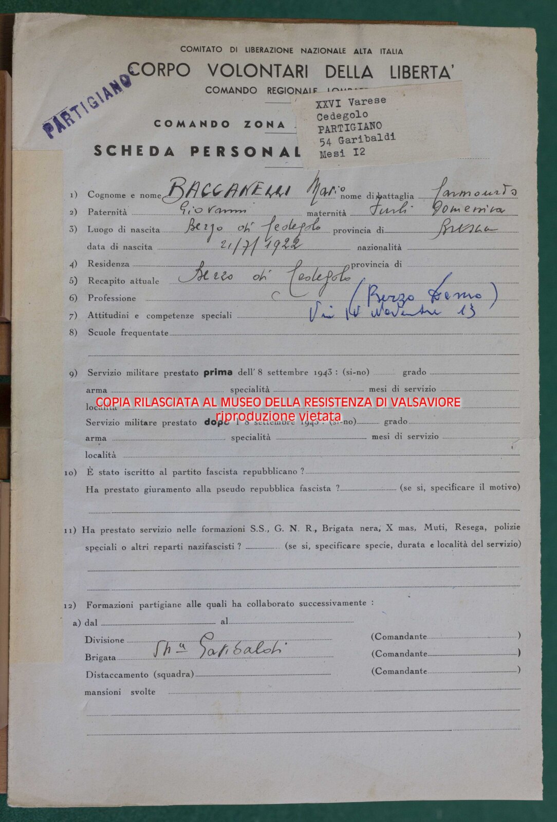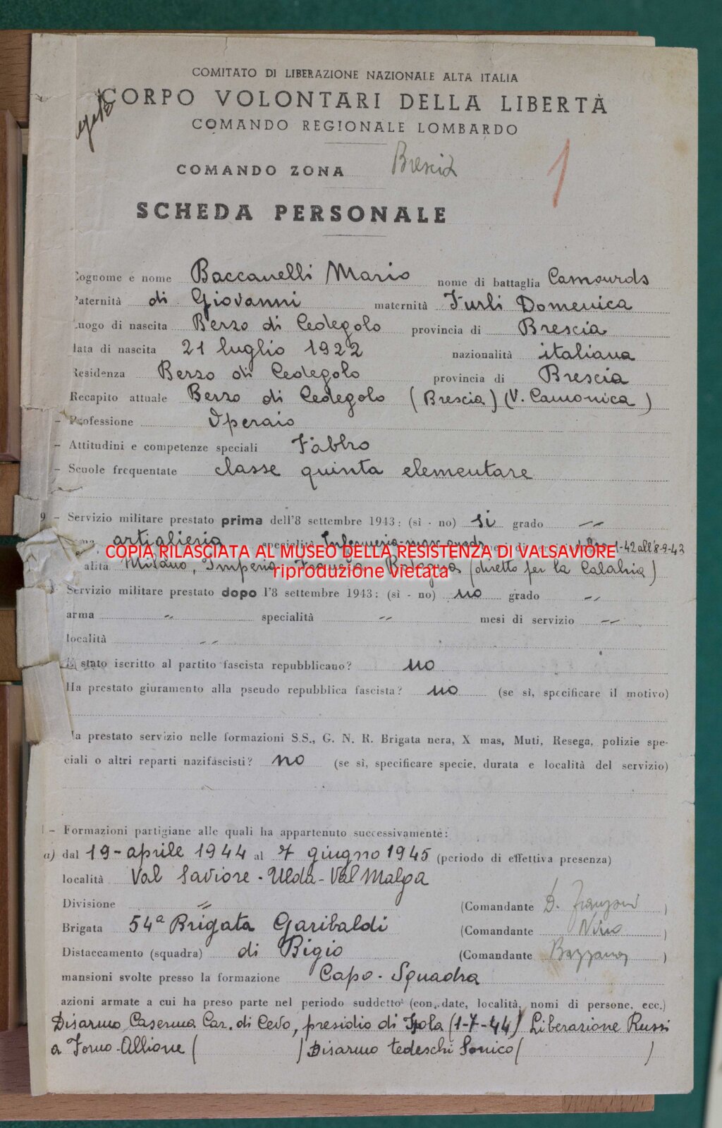 BACCANELLI MARIO 21/07/1922 - Partigiano