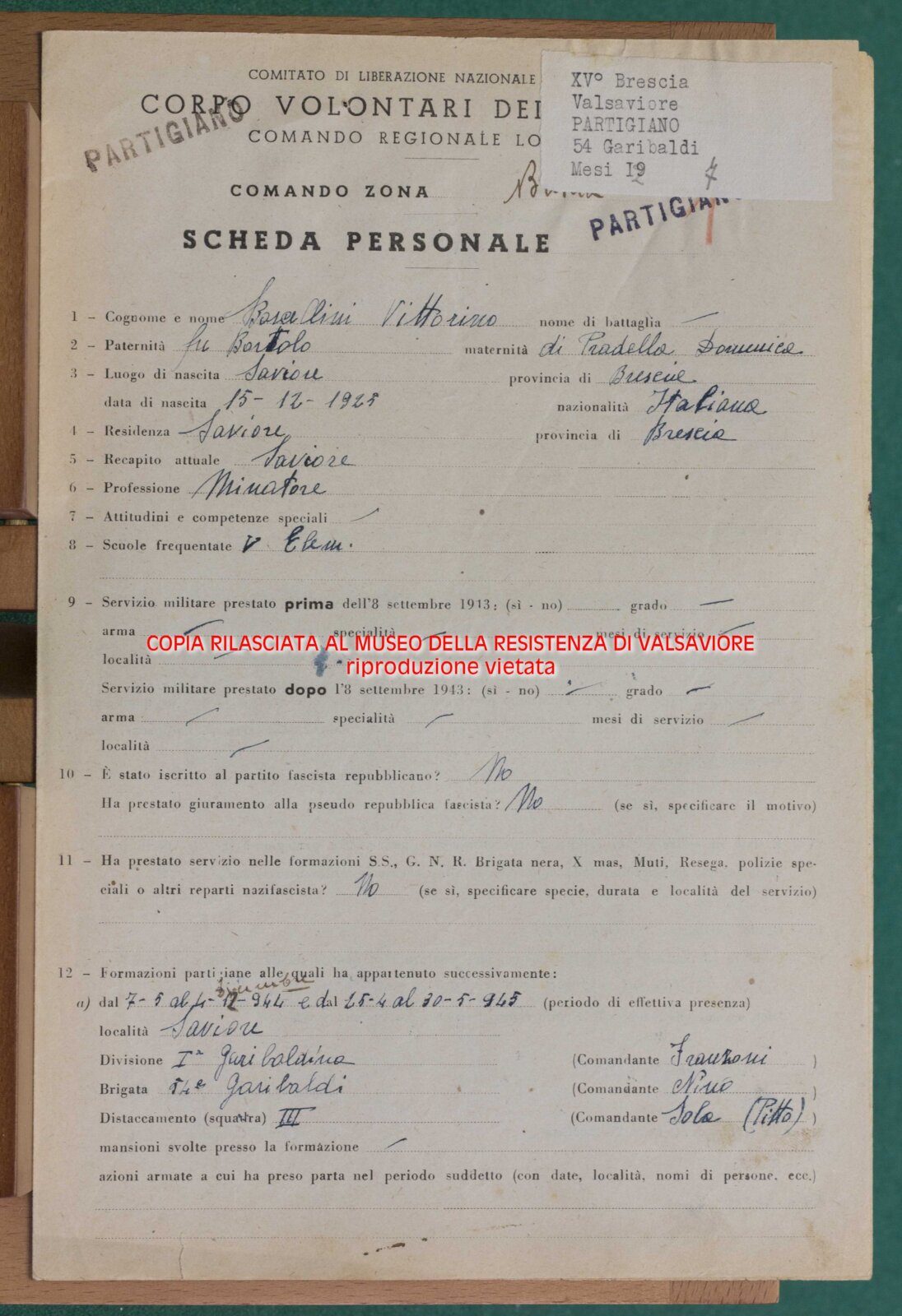 ROMELLI GIACOMO - Partigiano