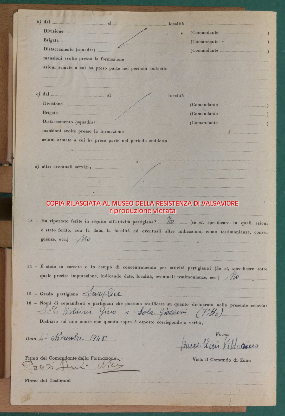 PICCINELI GIOVANNI - Partigiano e Sergente Maggiore