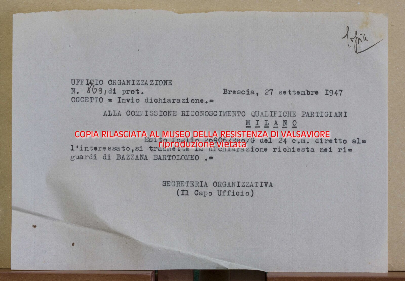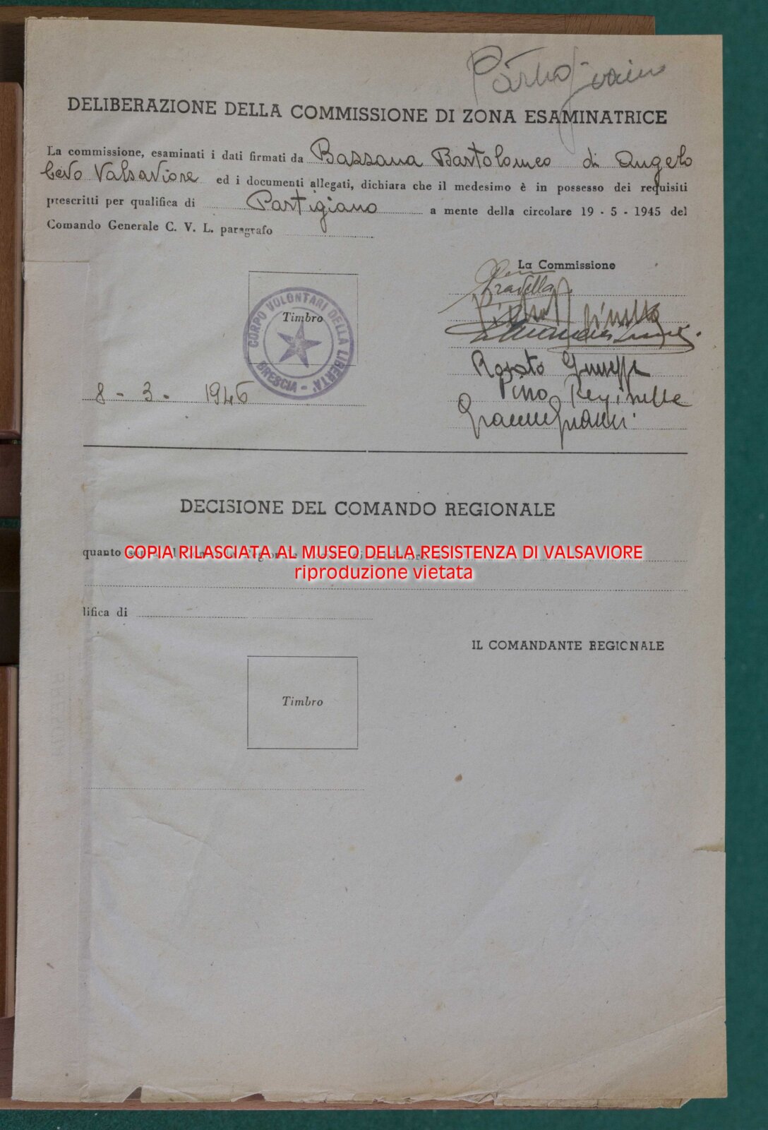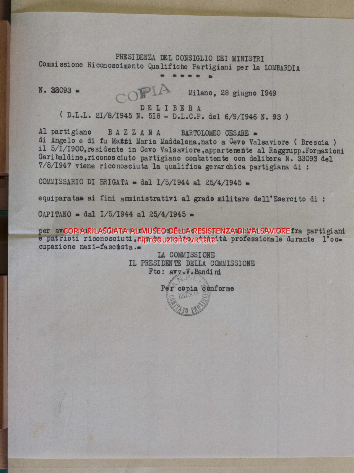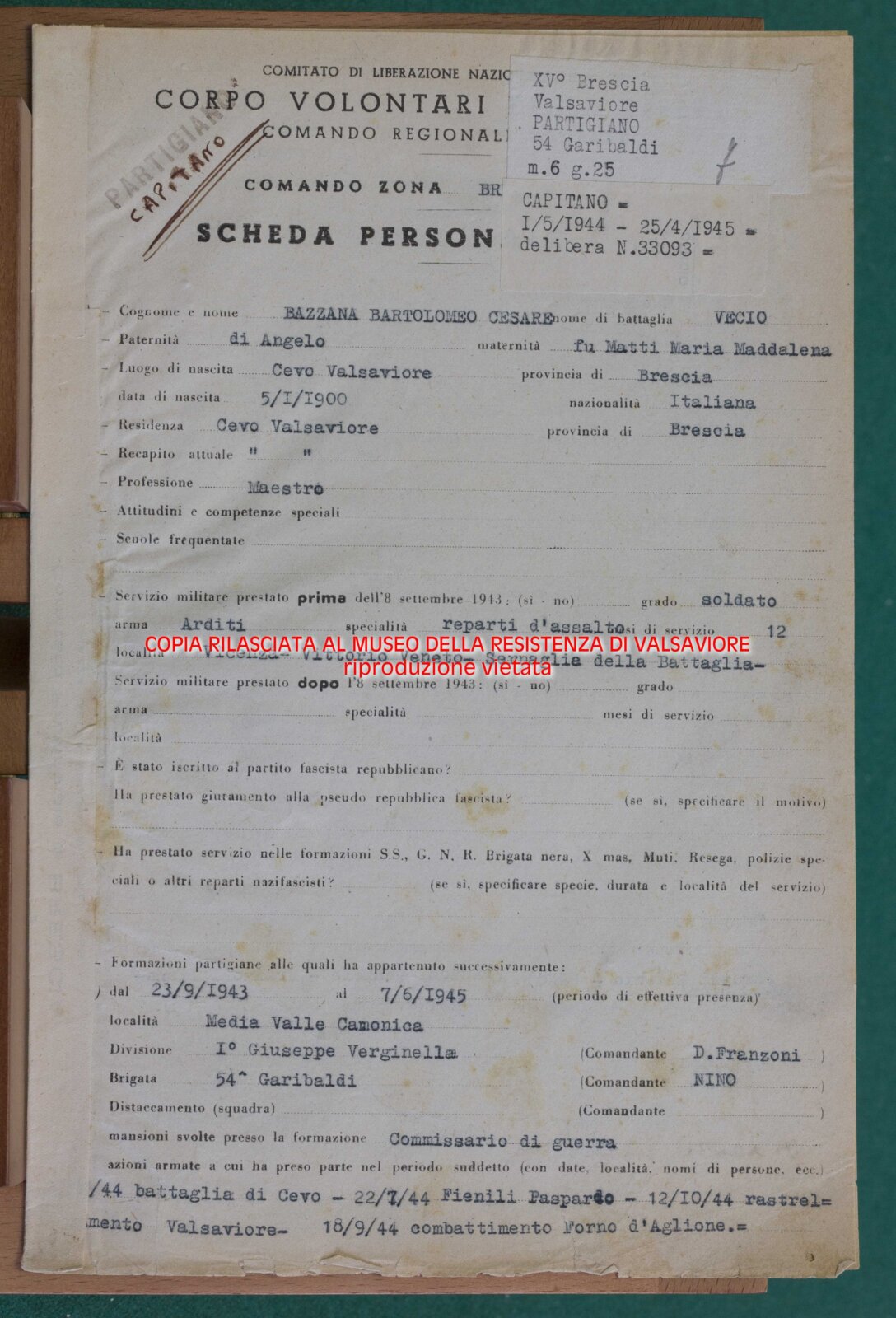 BAZZANA BARTOLOMEO CESARE- Partigiano e capitano