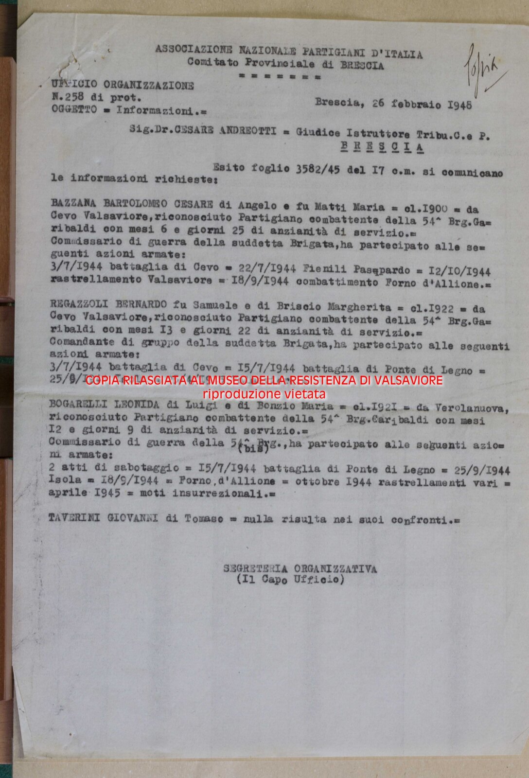 BONOMELLI BORTOLO (02-02-1926) - Partigiano