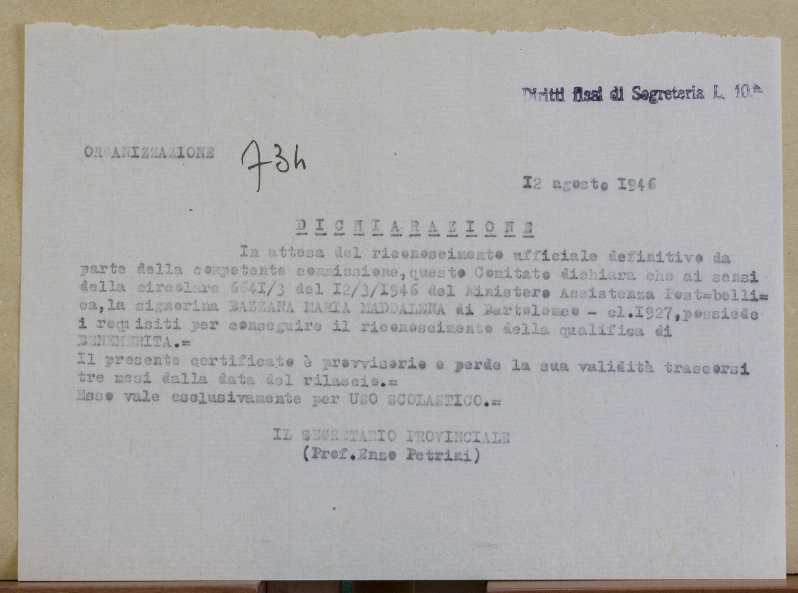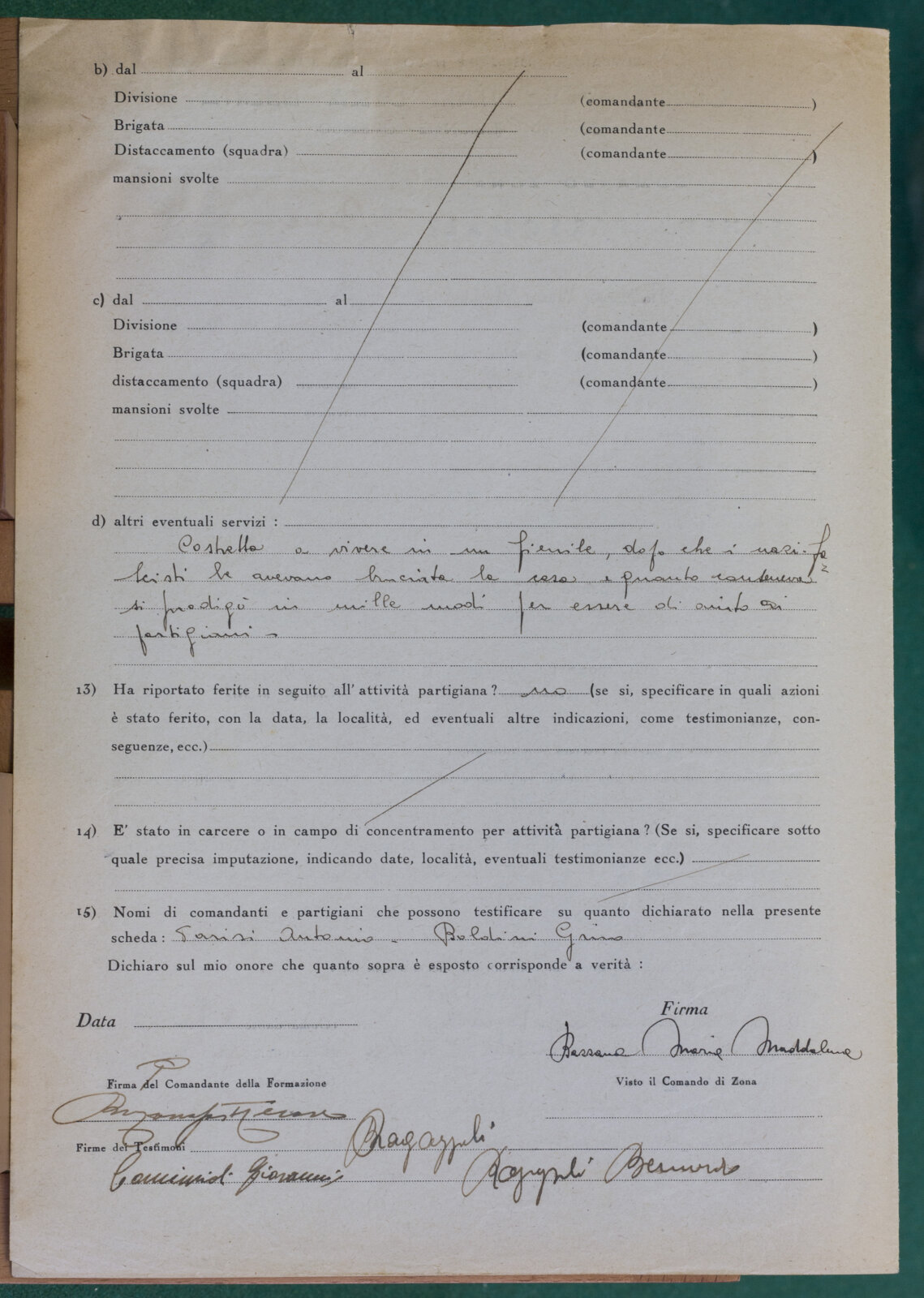 BAZZANA MARIA MADDALENA - Partigiana non riconosciuta