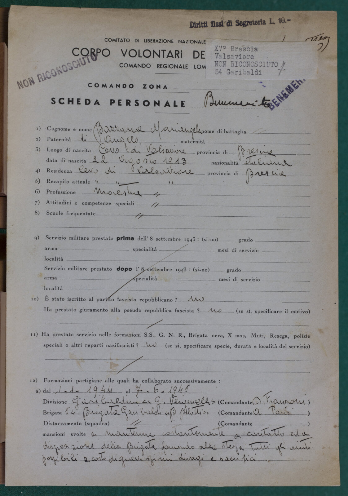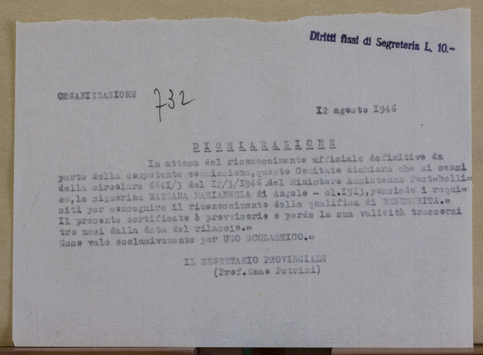 BAZZANA MARIANGELA - Partigiana non riconosciuta