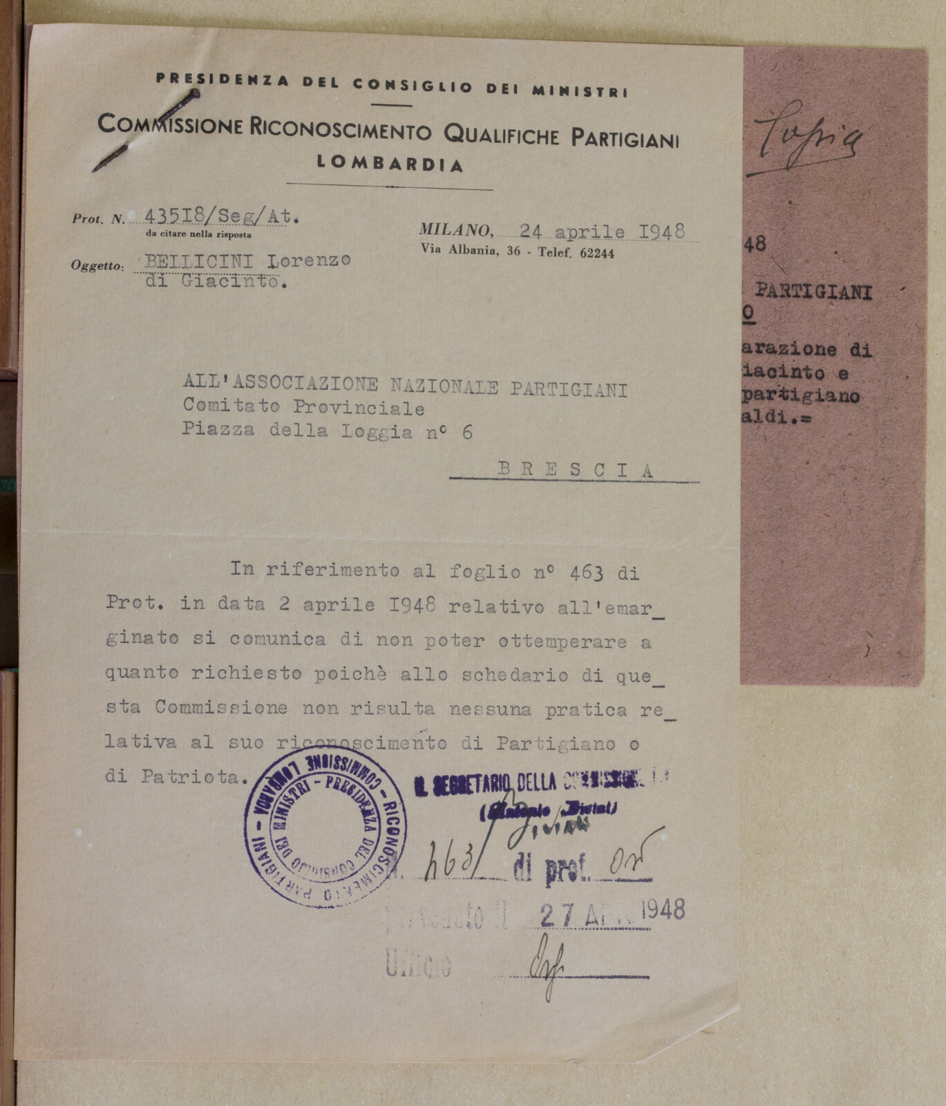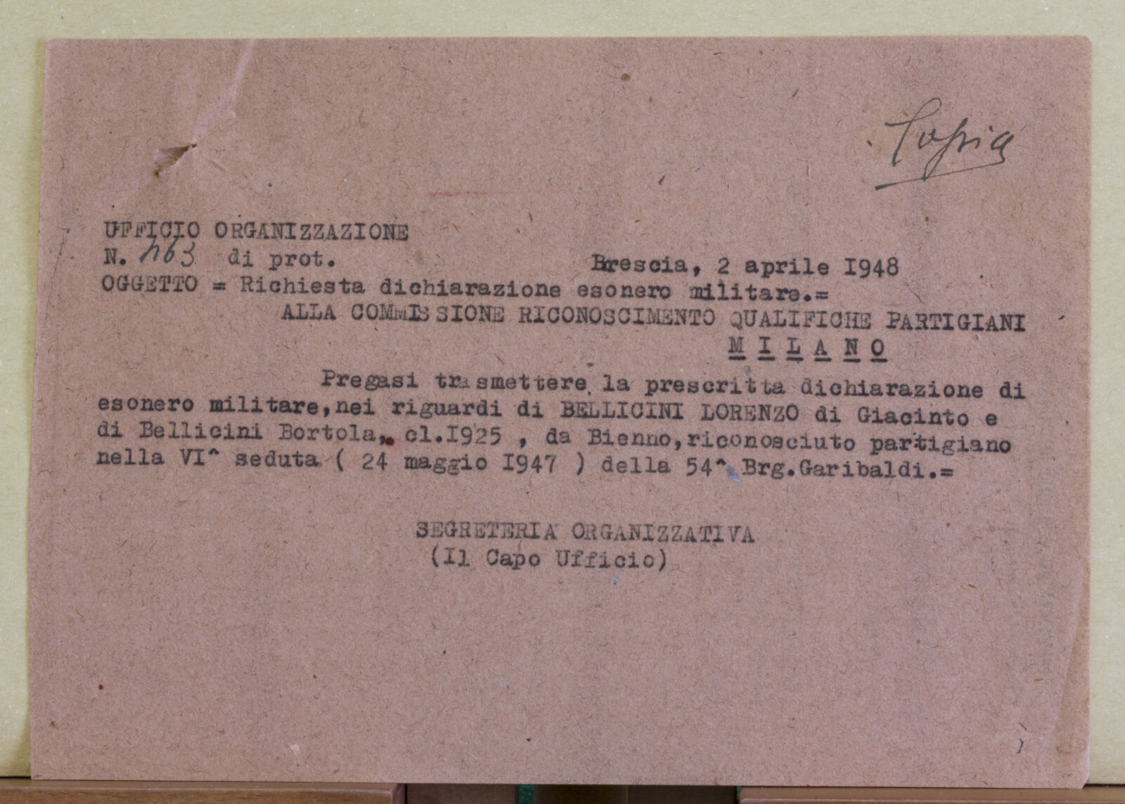 BELLICINI LORENZO - Partigiano