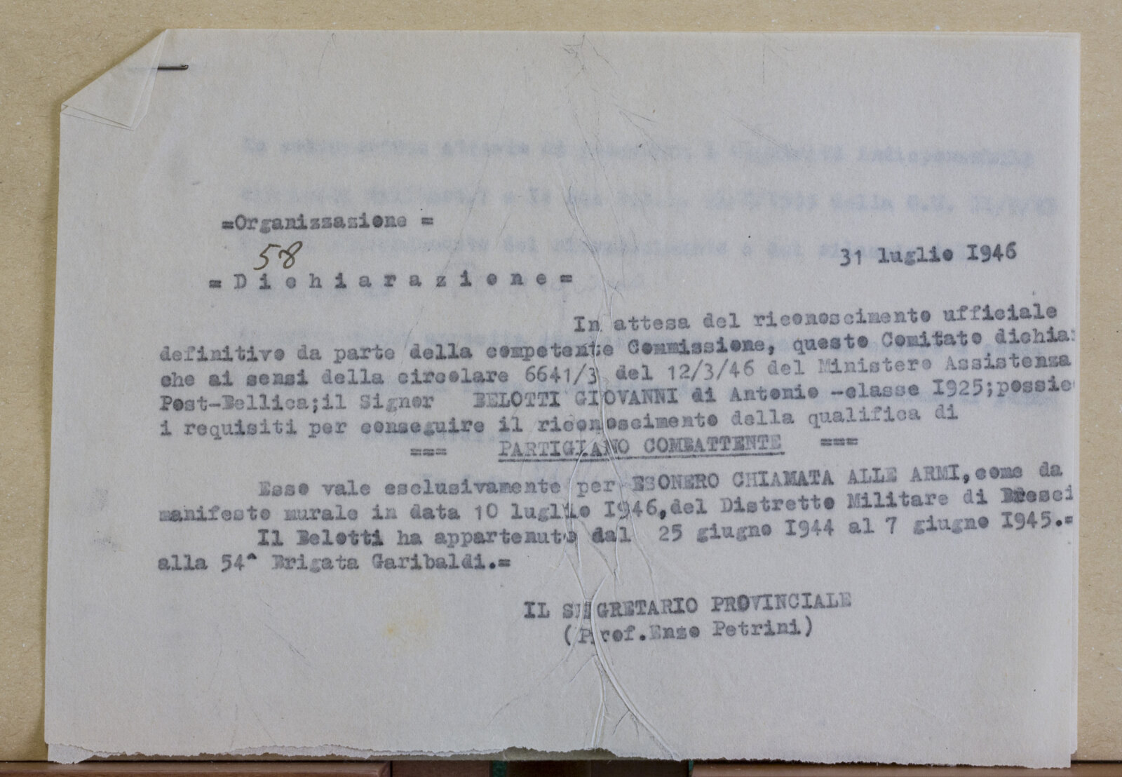 BELOTTI GIOVANNI - Partigiano e Patriota