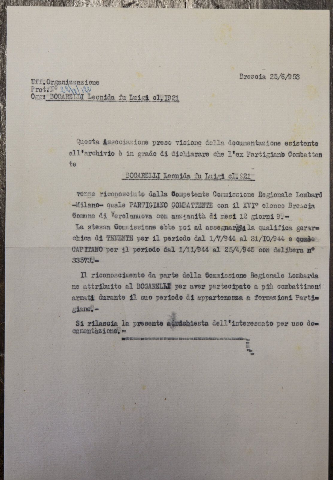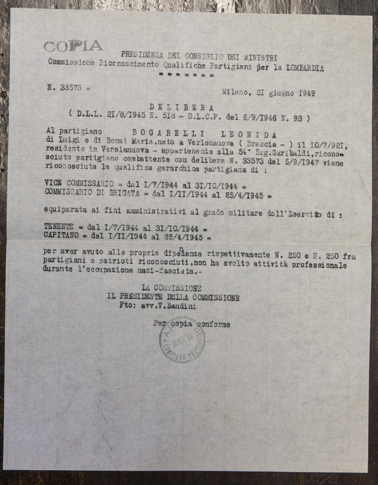 BOGARELLI LEONIDA - Partigiano e Capitano