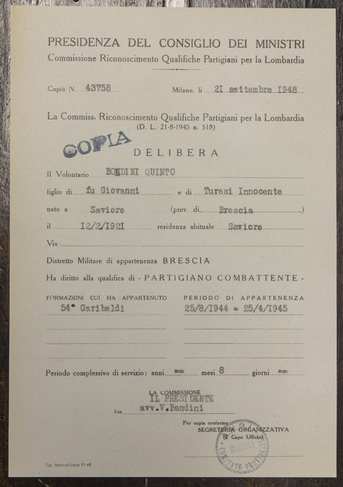 PAVARINI GIOVANNI - Partigiano