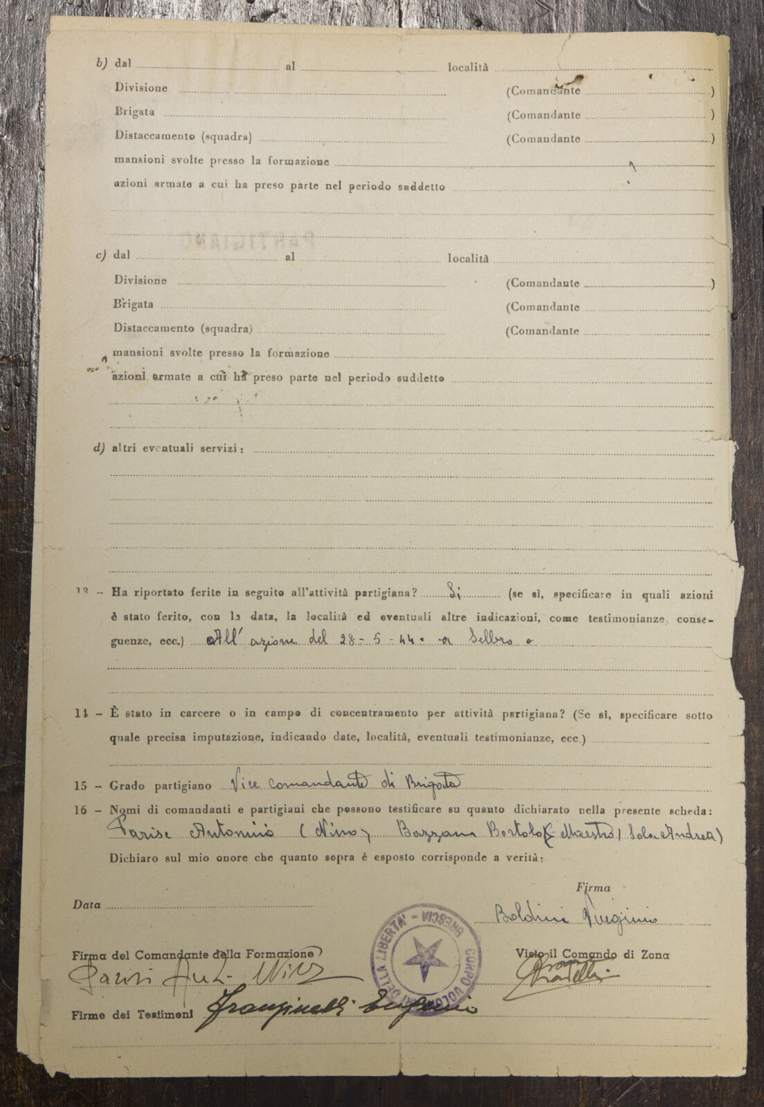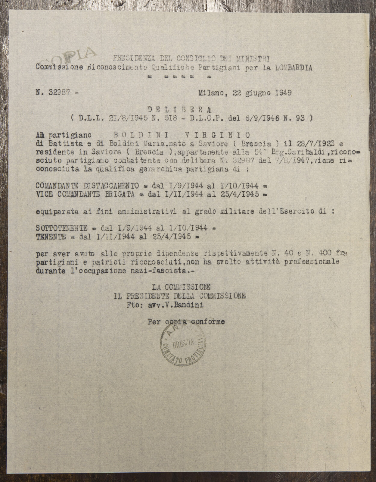 BOLDINI VIRGINIO - Partigiano e Sergente