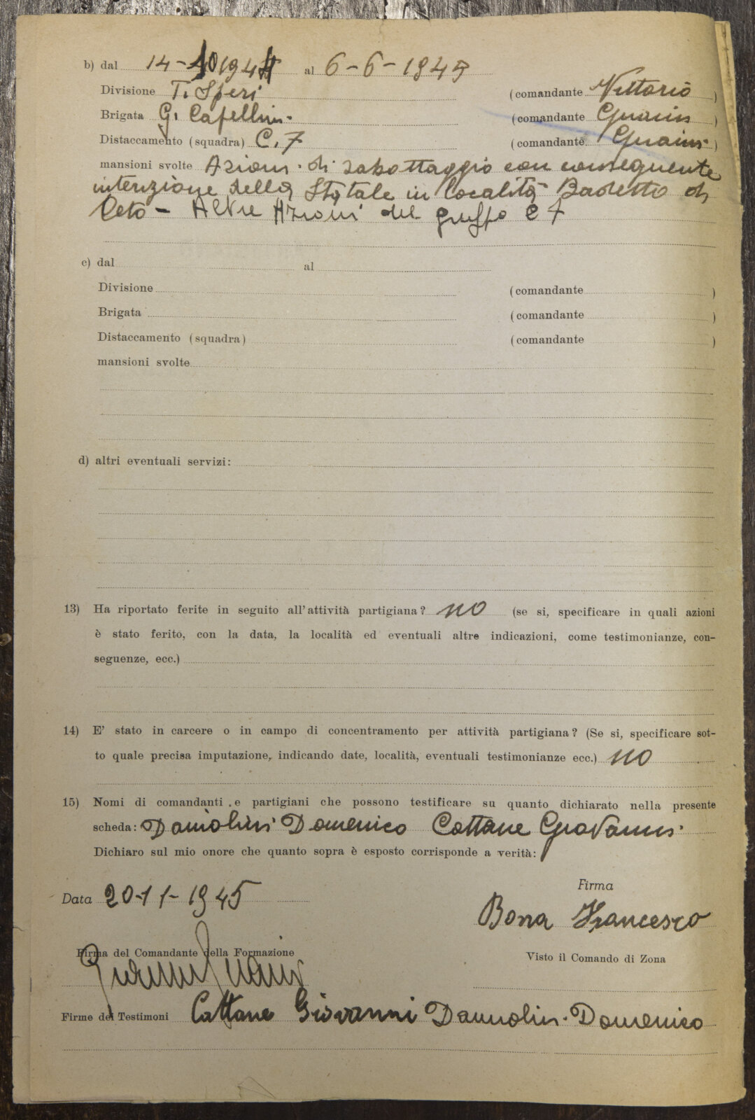 BONA FRANCESCO - Partigiano