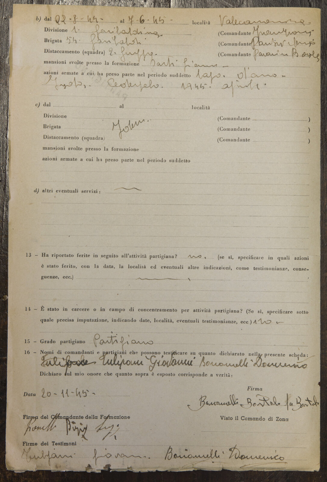 BONOMELLI BORTOLO (03-12-1924) - Partigiano non riconosciuto