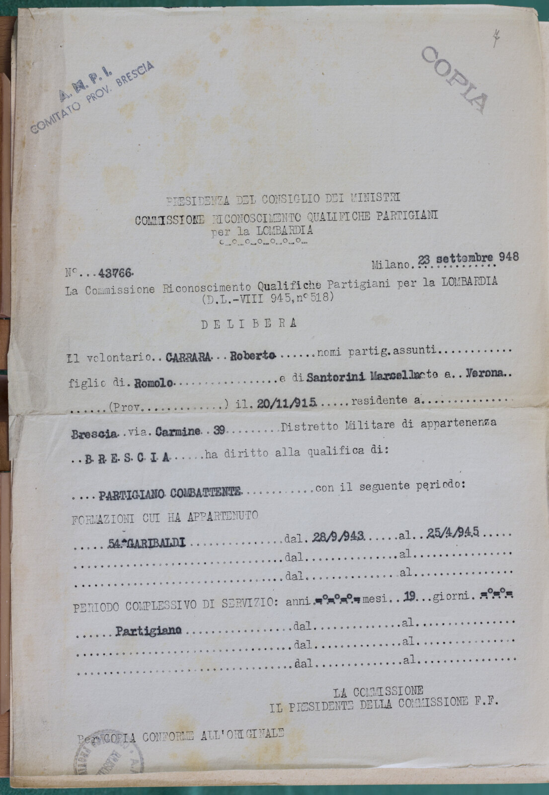 VITALI GIOACCHINO - Partigiano non riconosciuto