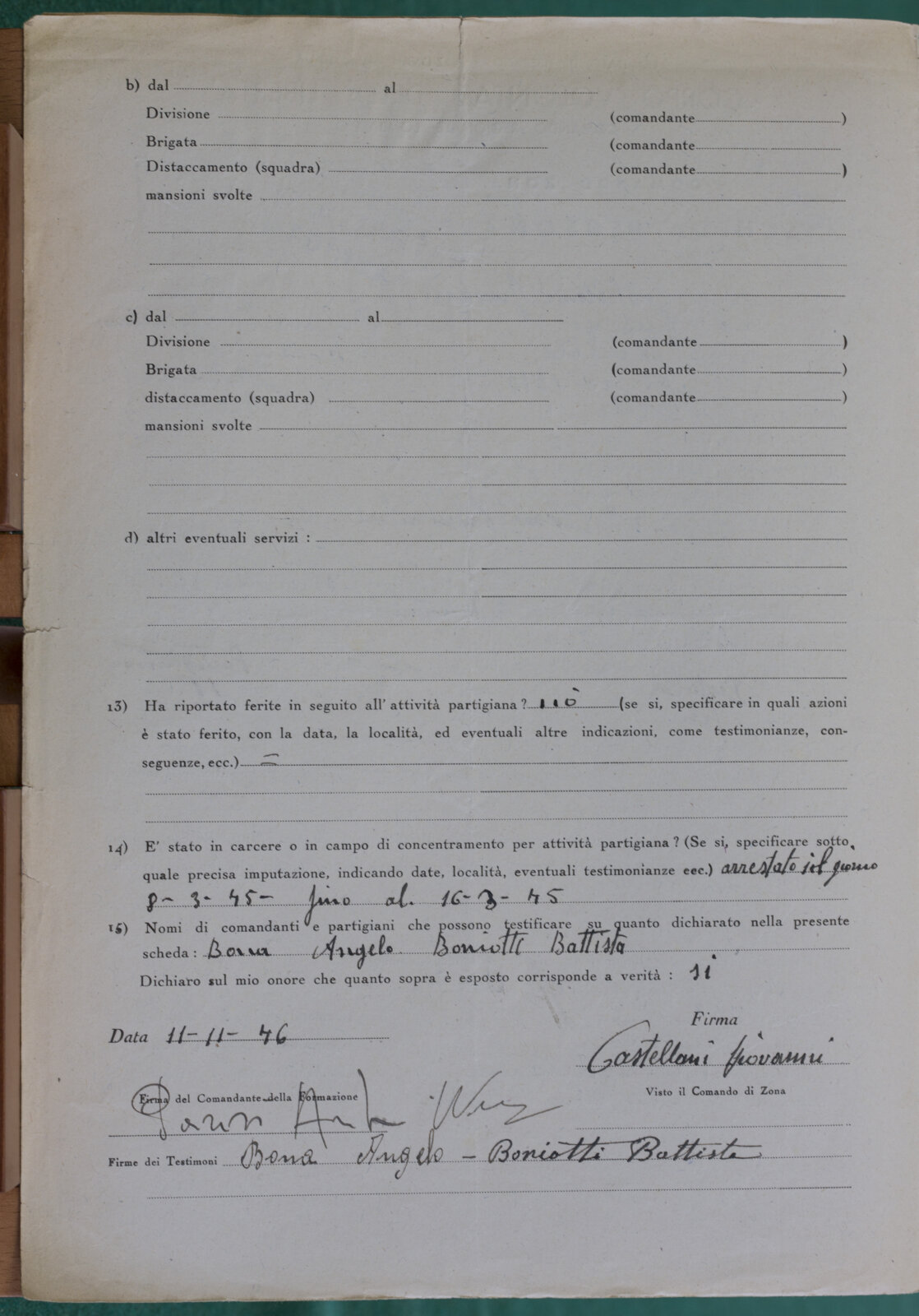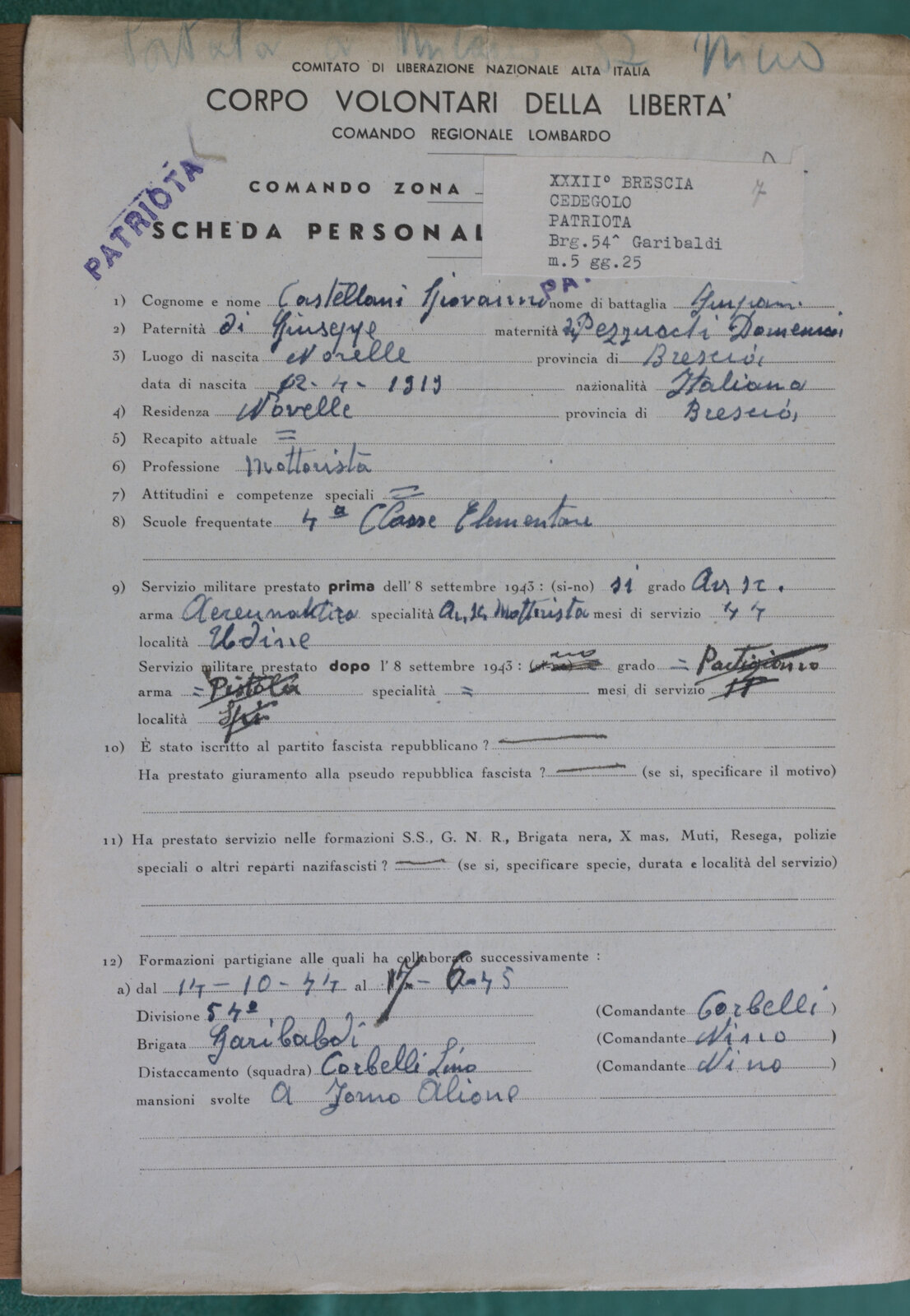 BONOMELLI GIOVANNI (02-12-1920) - Partigiano