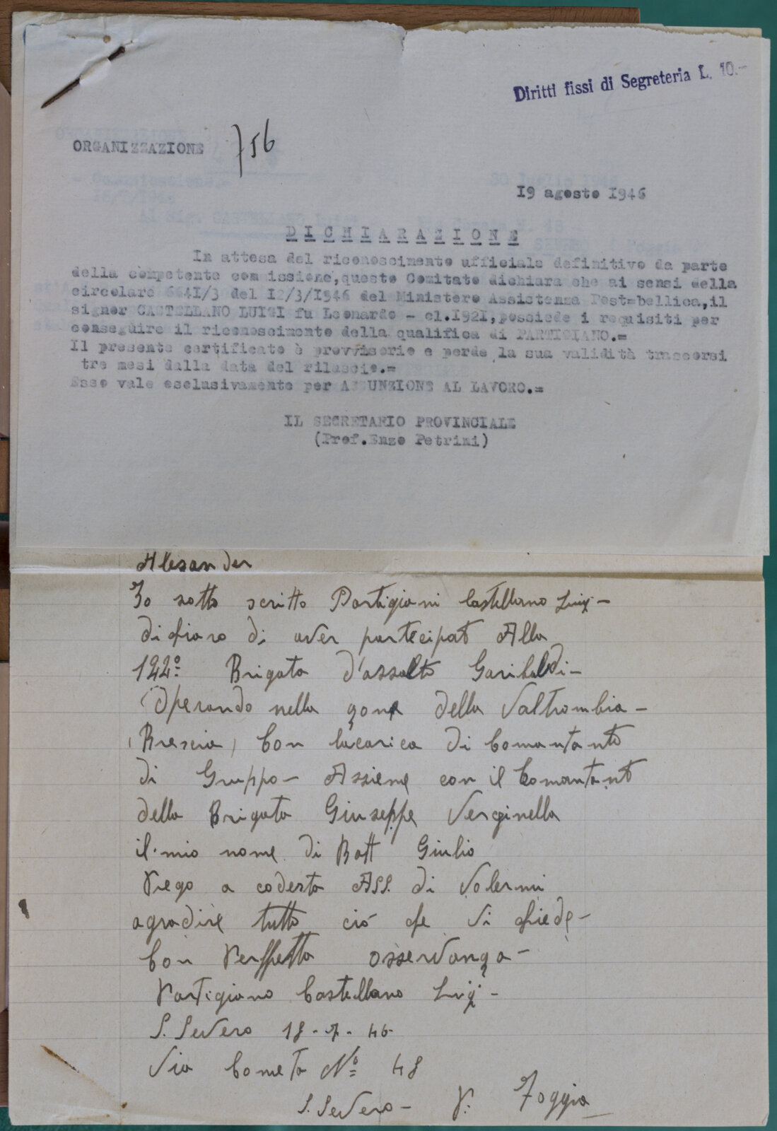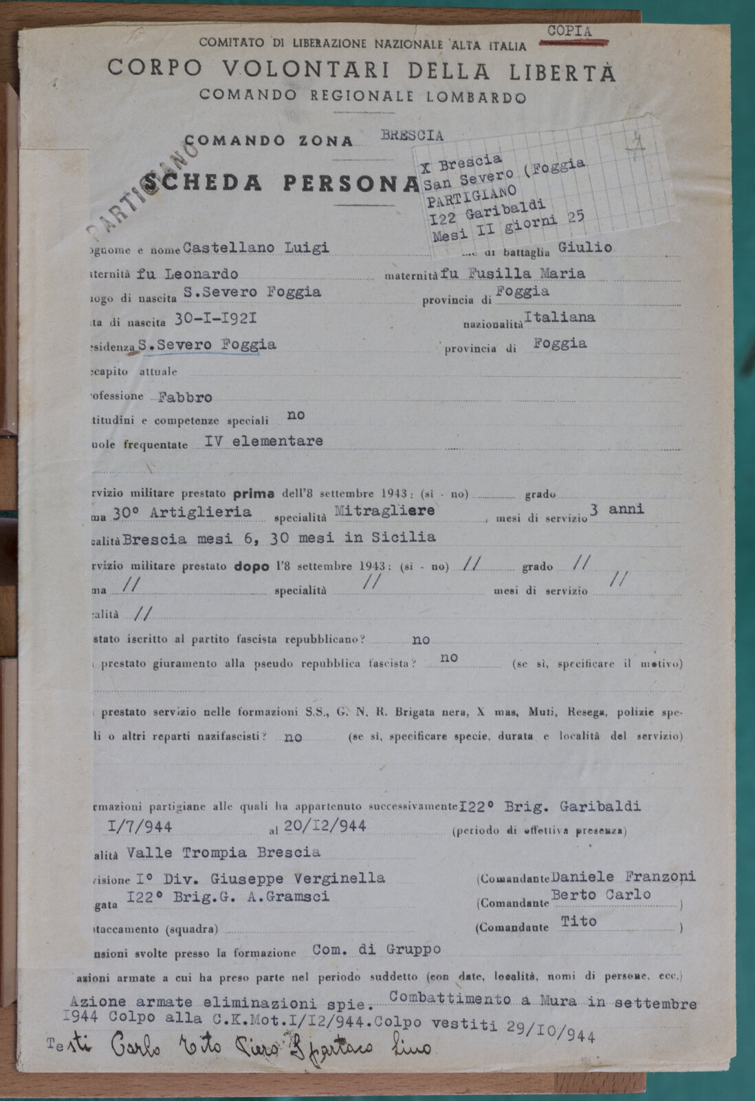 BACCANELLI MARIO 21/07/1922 - Partigiano