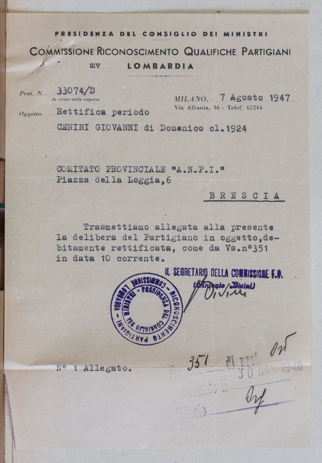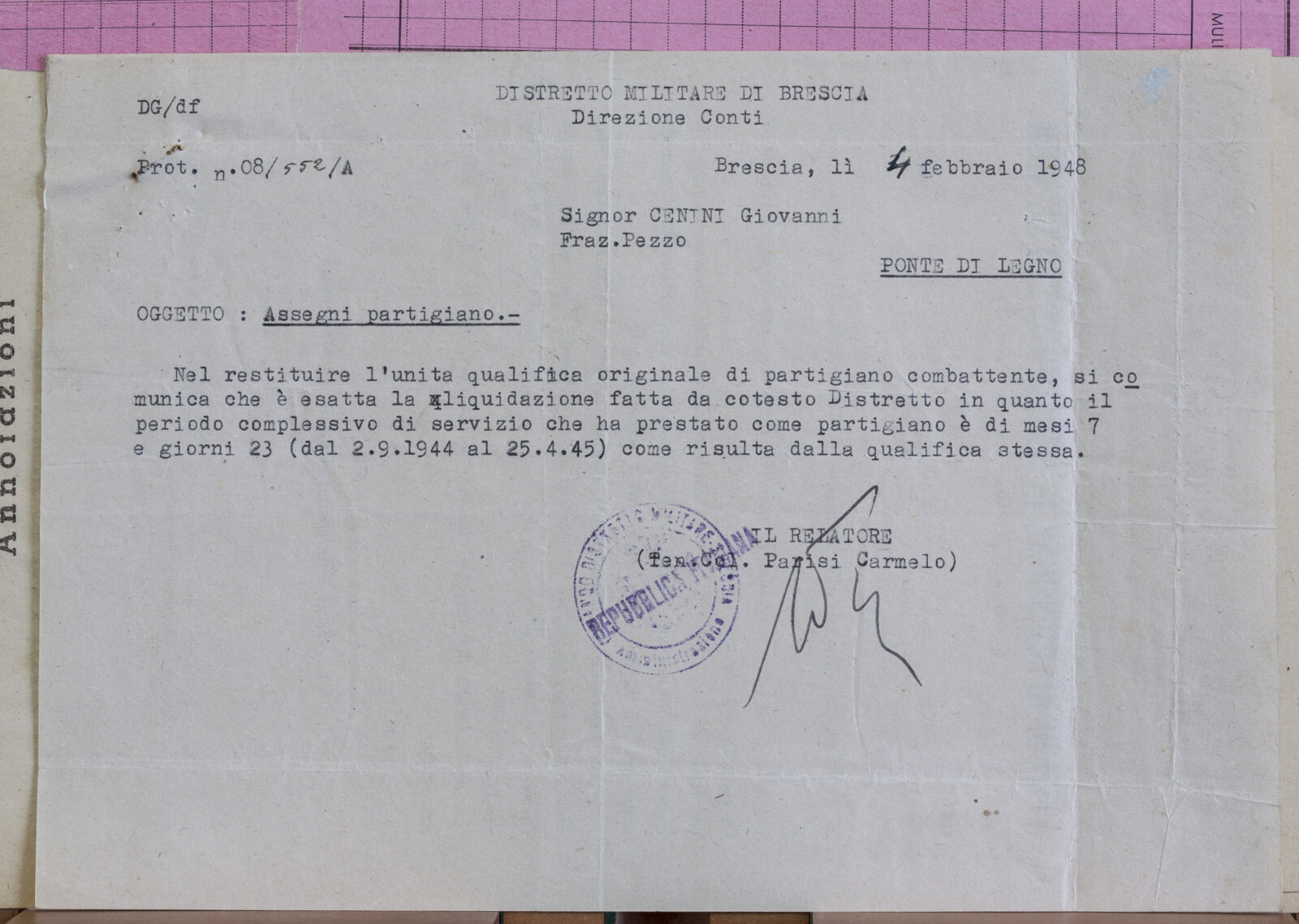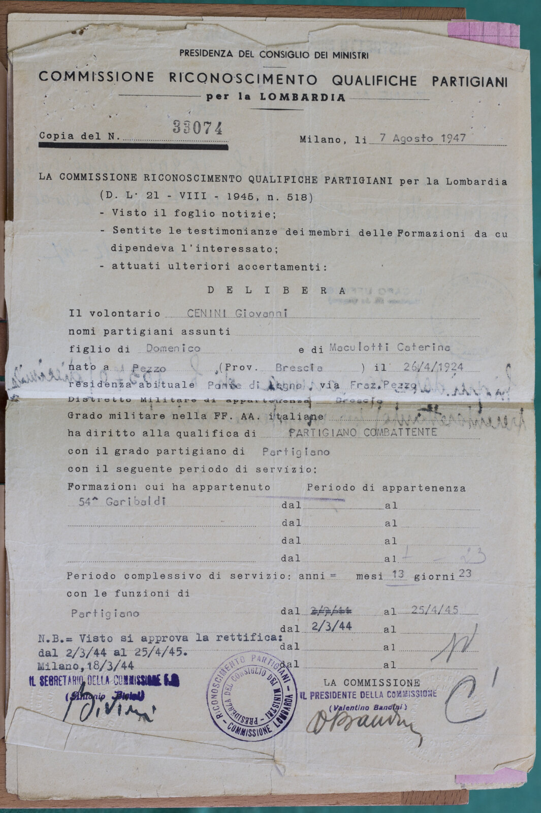 BONOMELLI GIOVANNI (MANISA)- PARTIGIANO