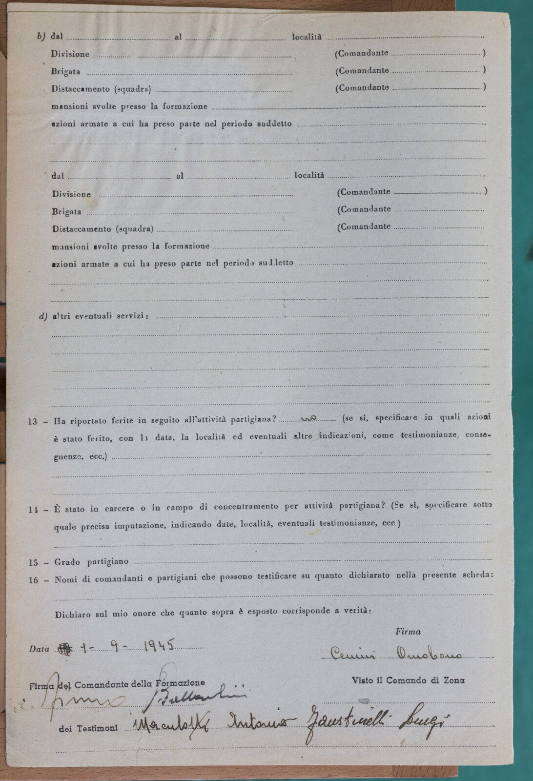COMICIOLI GIOVANNI (11-05-1915) - Partigiano non riconosciuto
