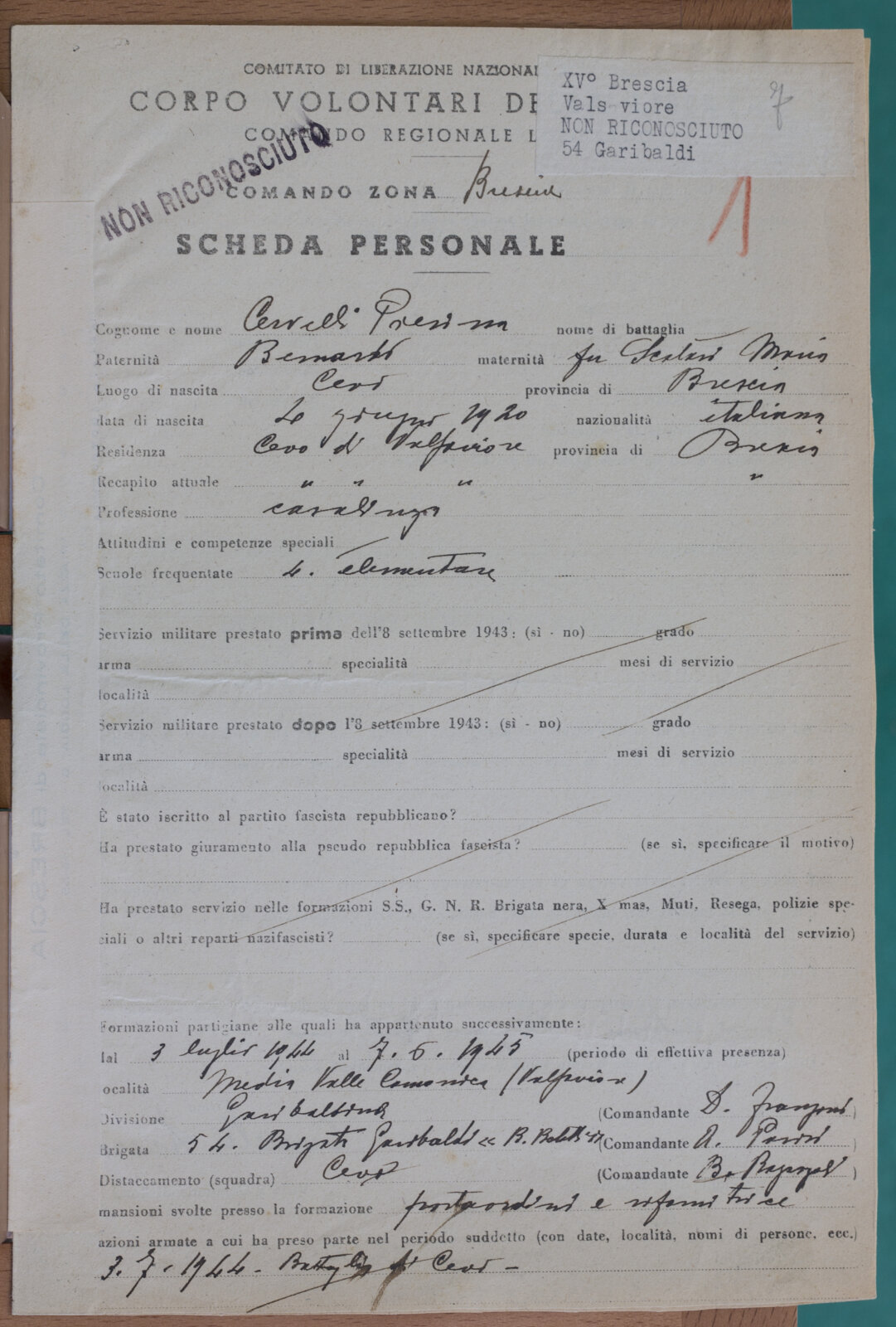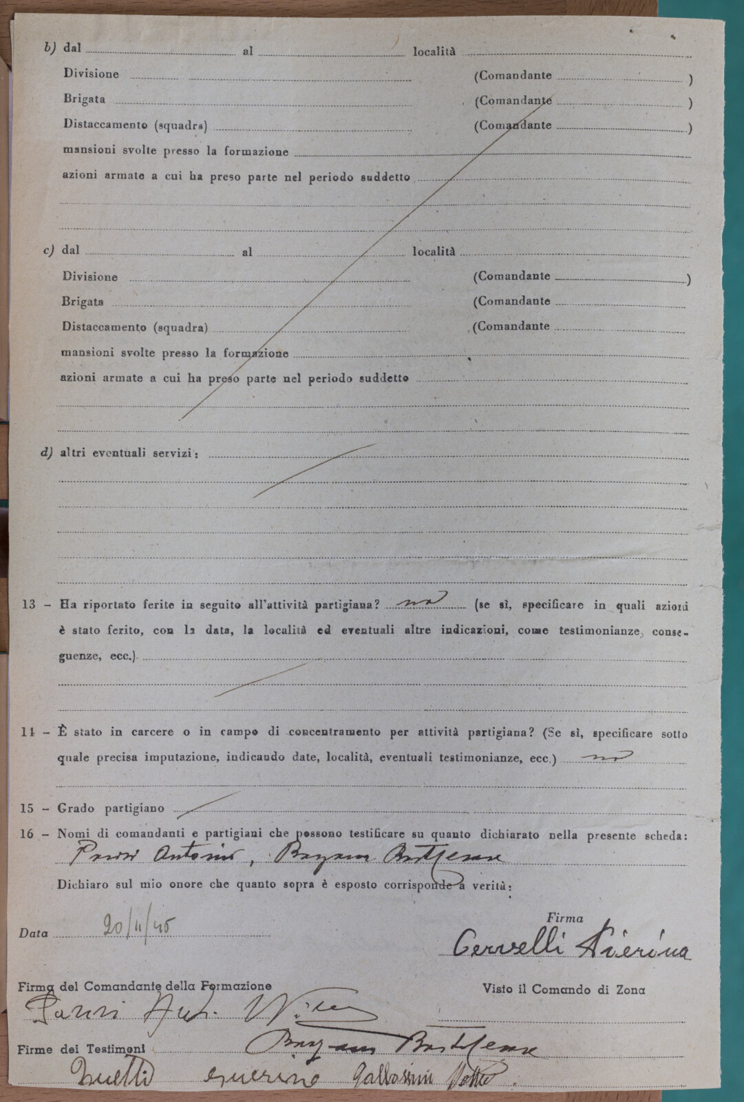 CERVELLI PIERINA - Partigiana non riconosciuta
