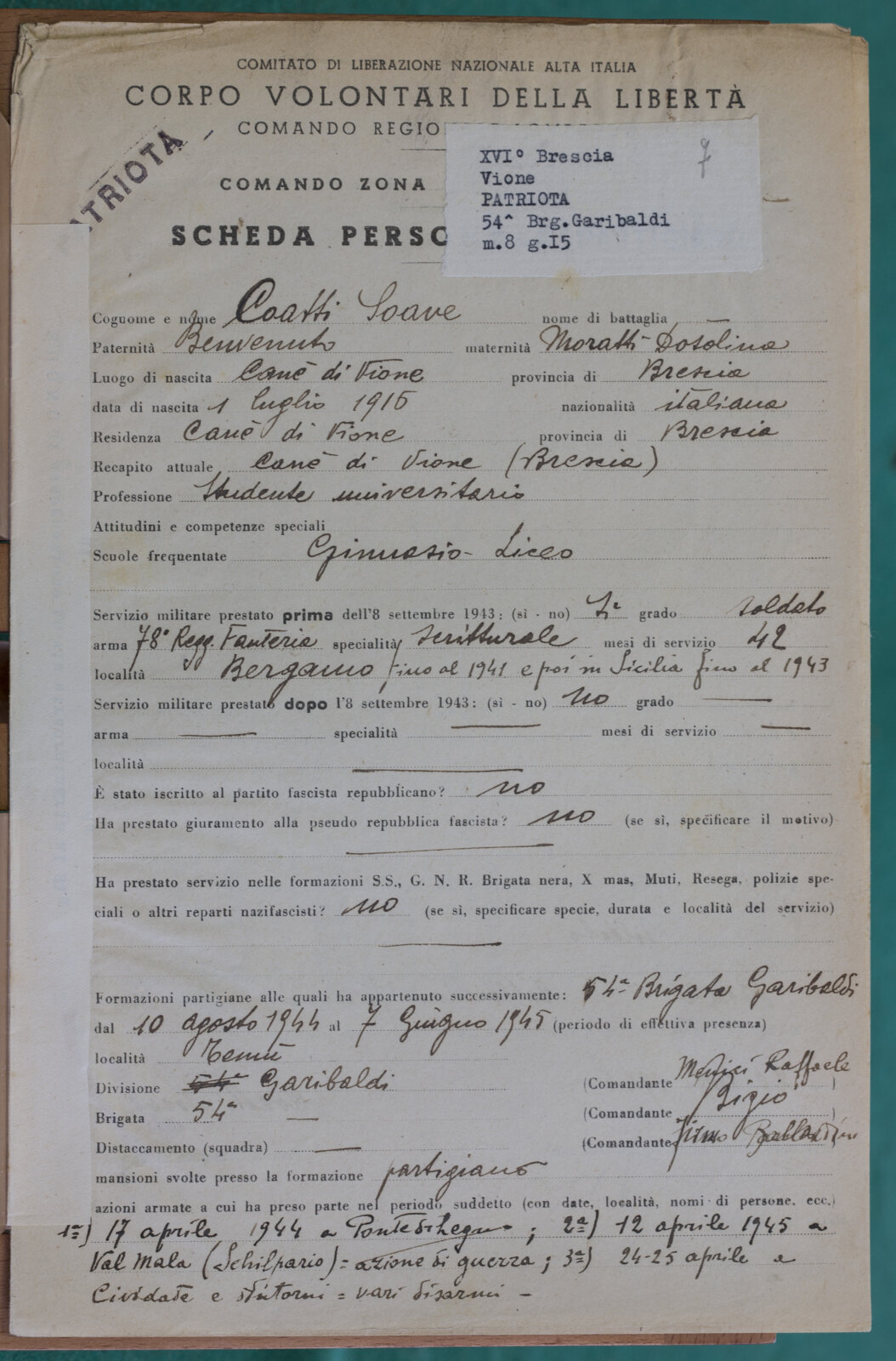 BERTOLI GIOVAN PIETRO - Partigiano non riconosciuto