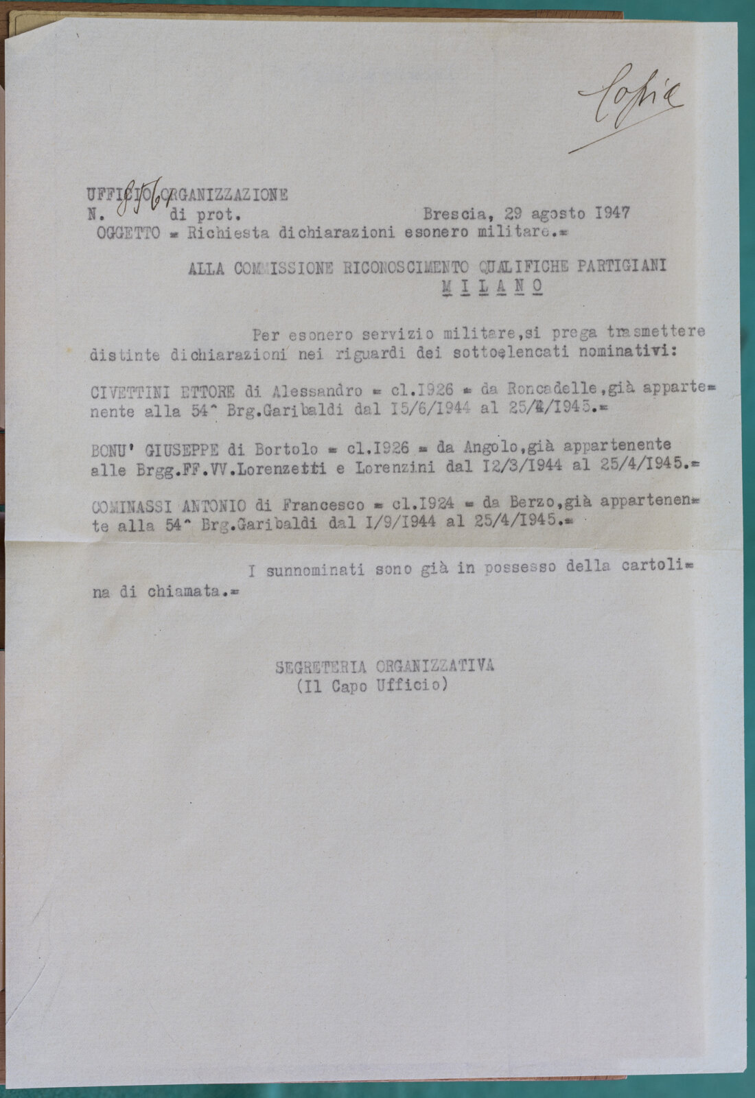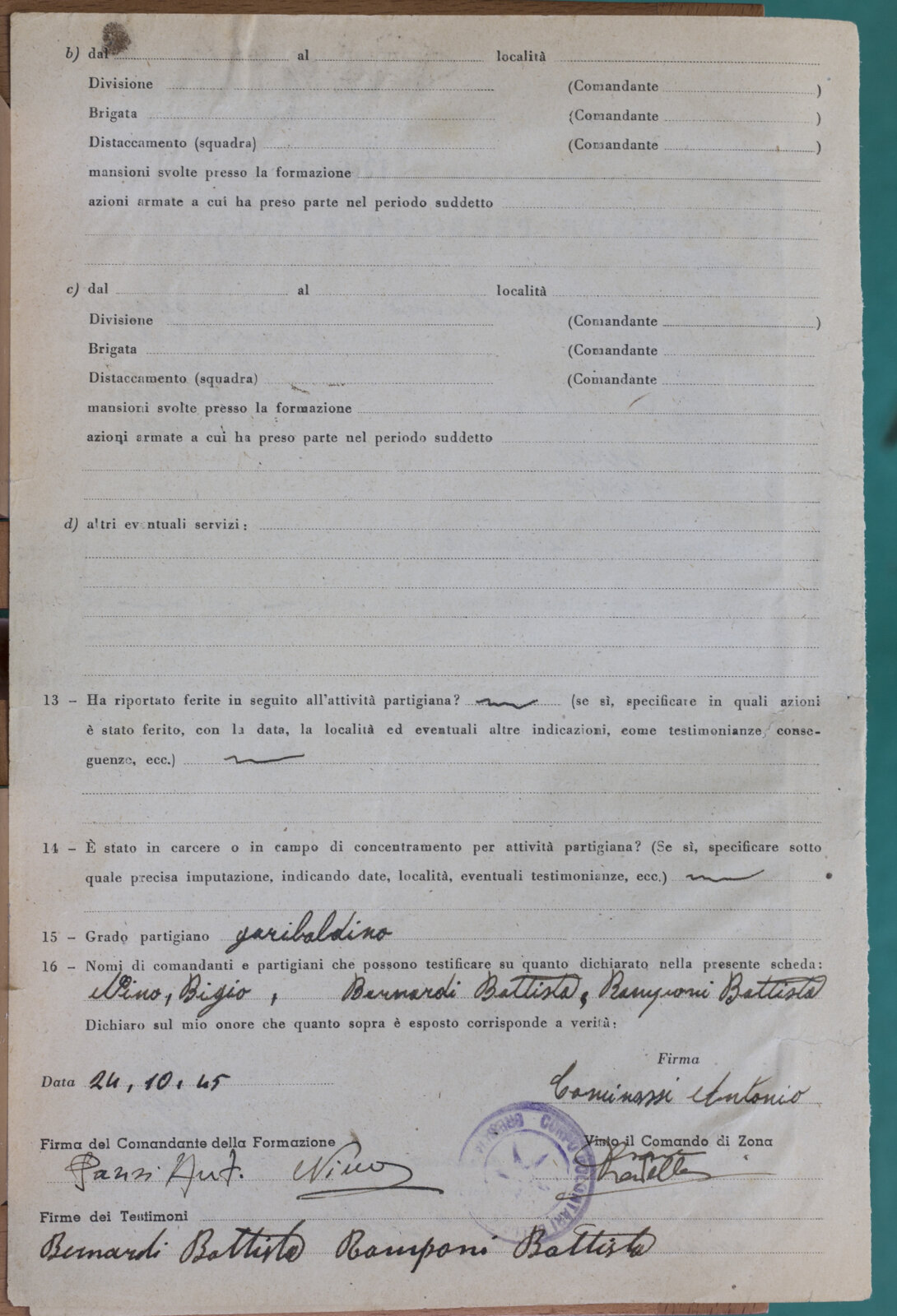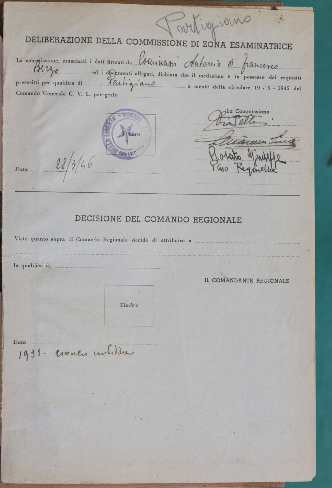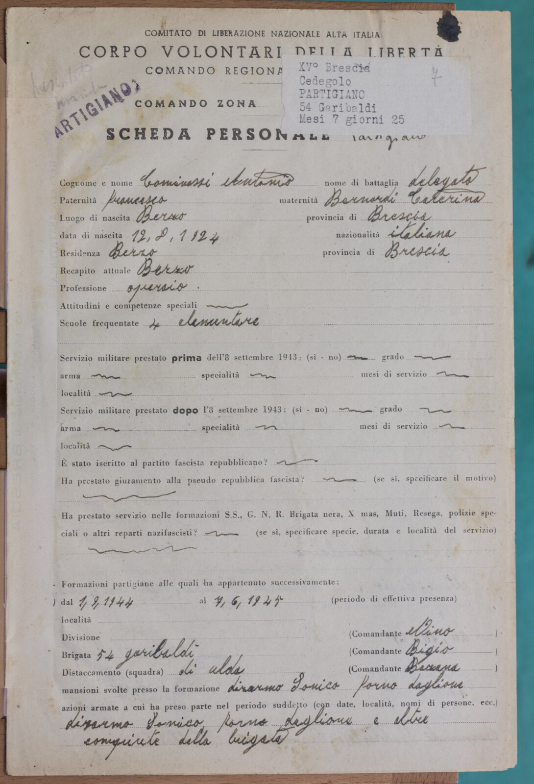 COMENSOLI ANTONIO - Partigiano