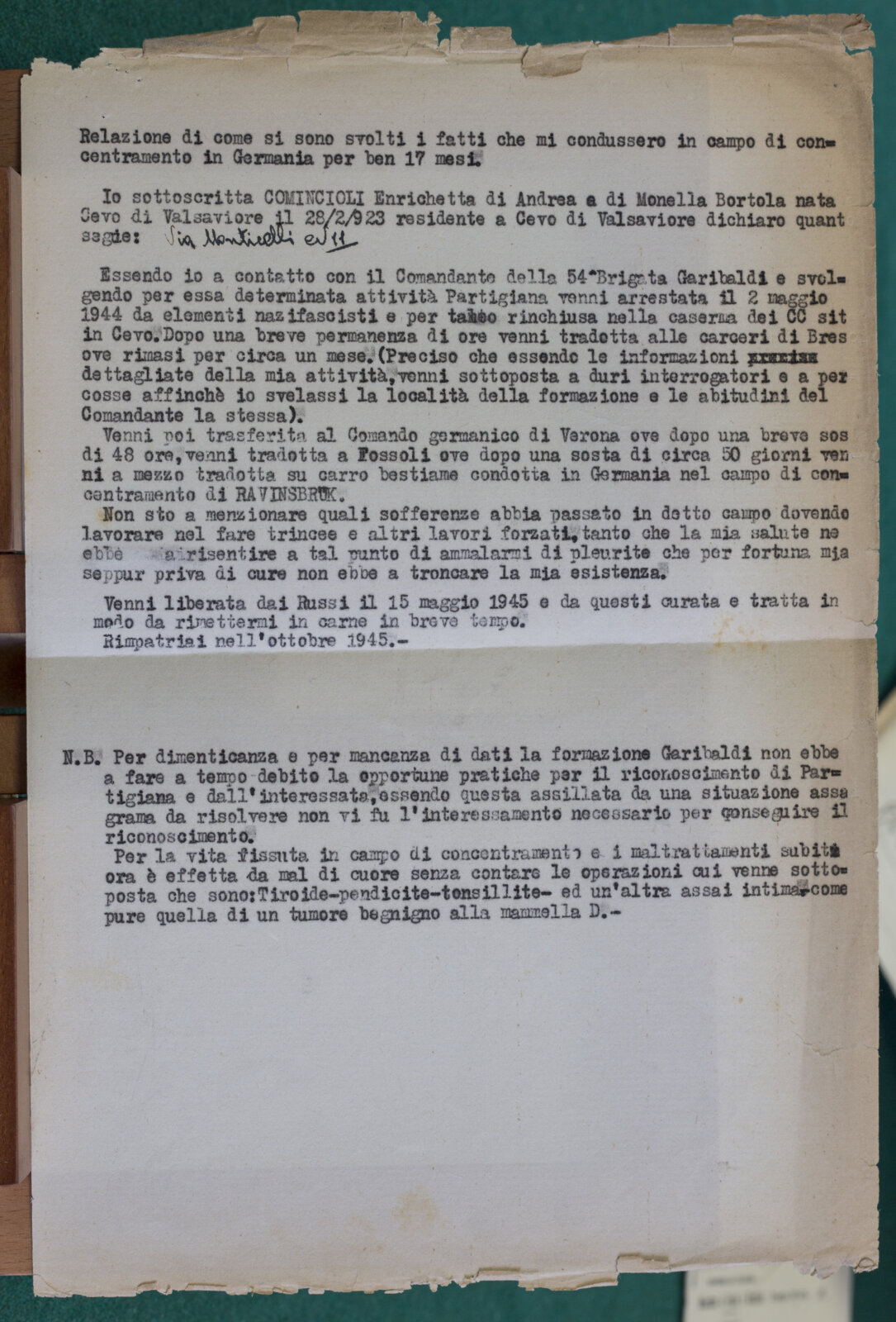 COMINCIOLI ENRICHETTA - Staffetta e Deportata