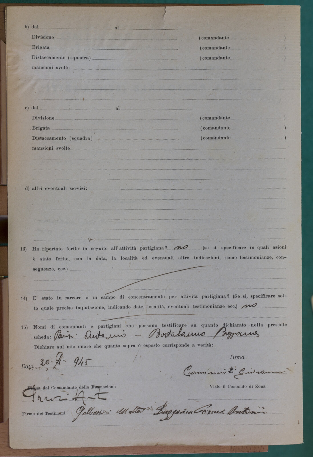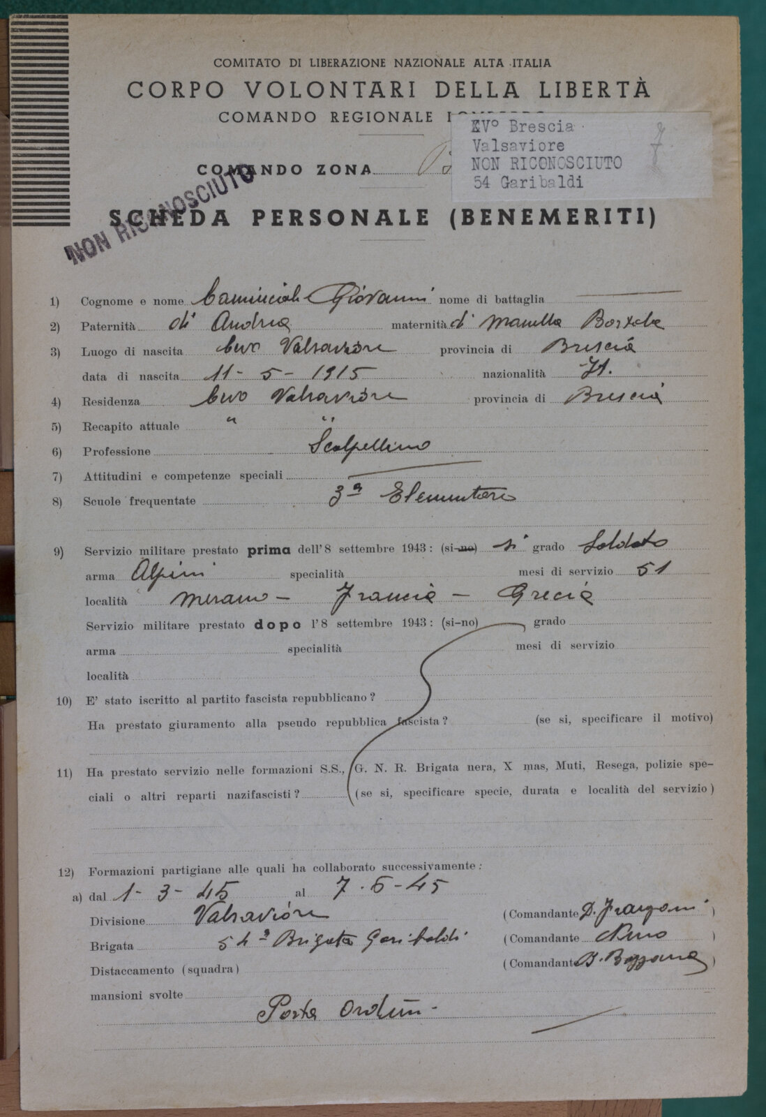 COMICIOLI GIOVANNI (11-05-1915) - Partigiano non riconosciuto