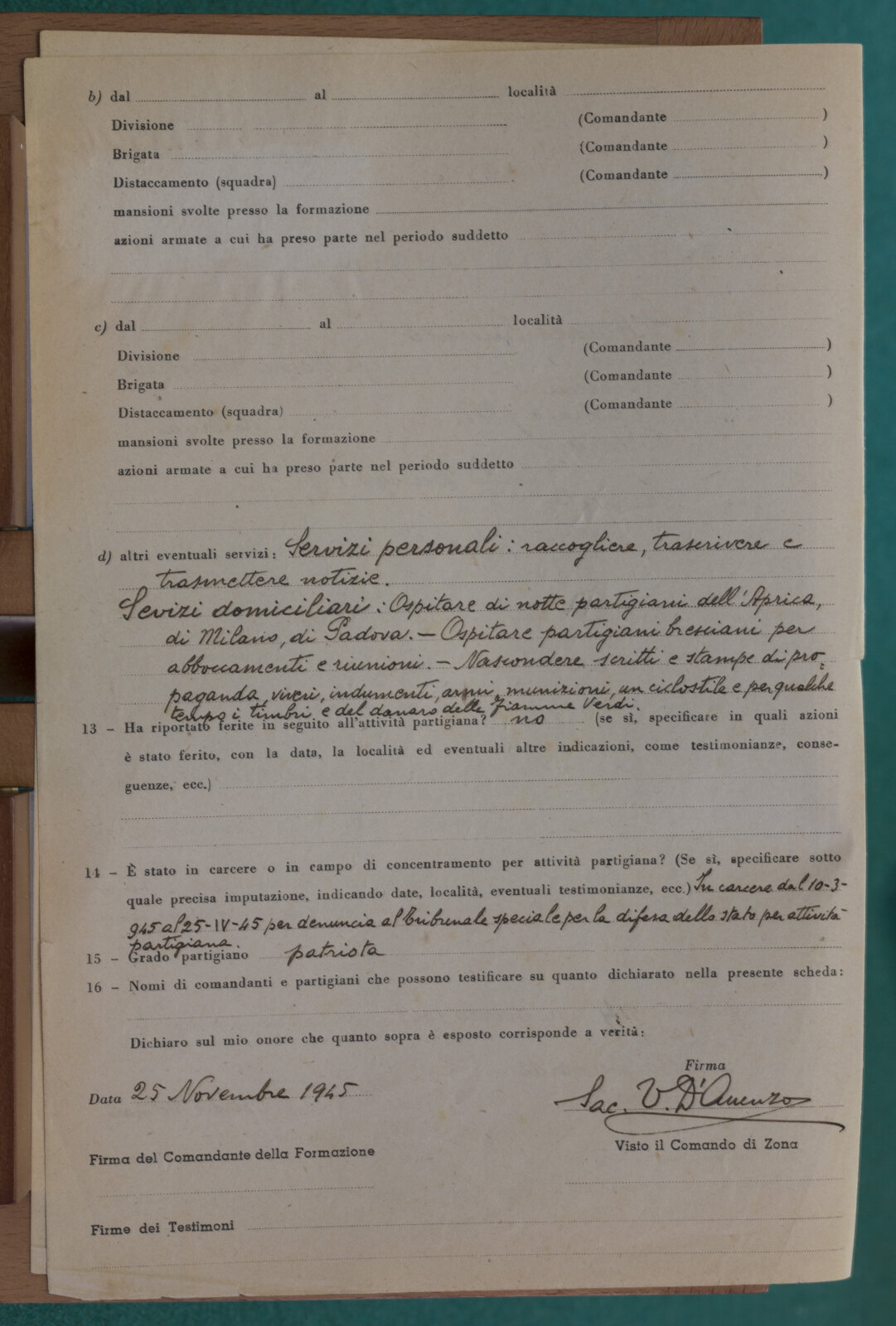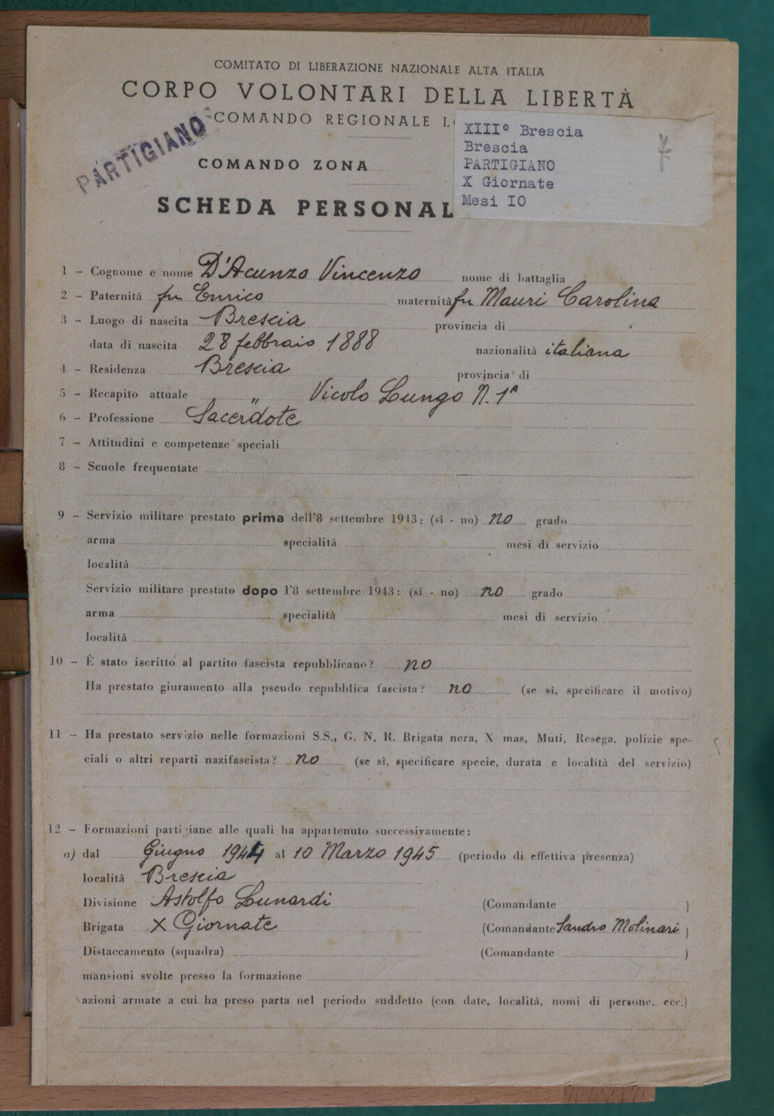 D'ACUNZO DON VINCENZO - Partigiano