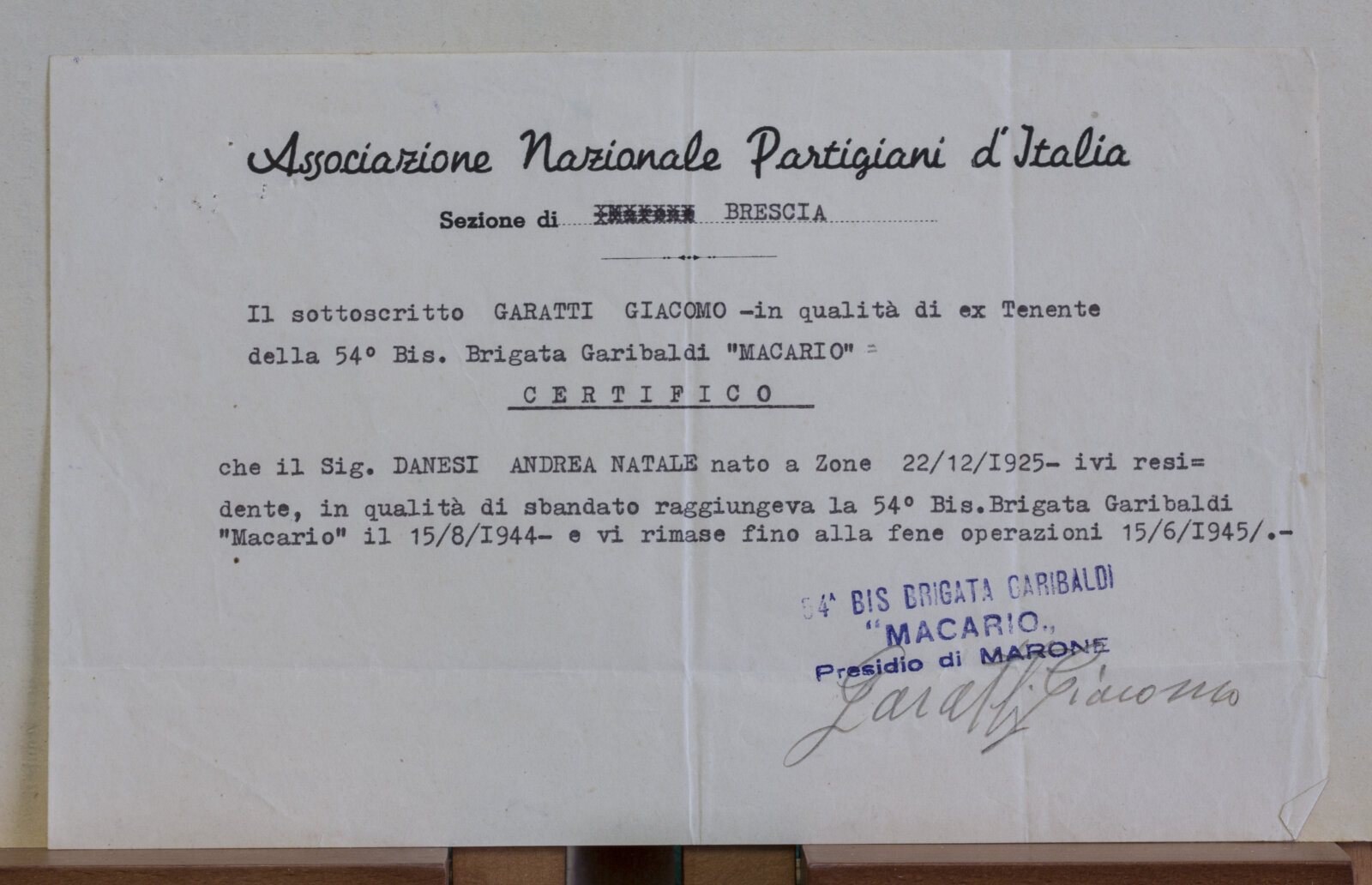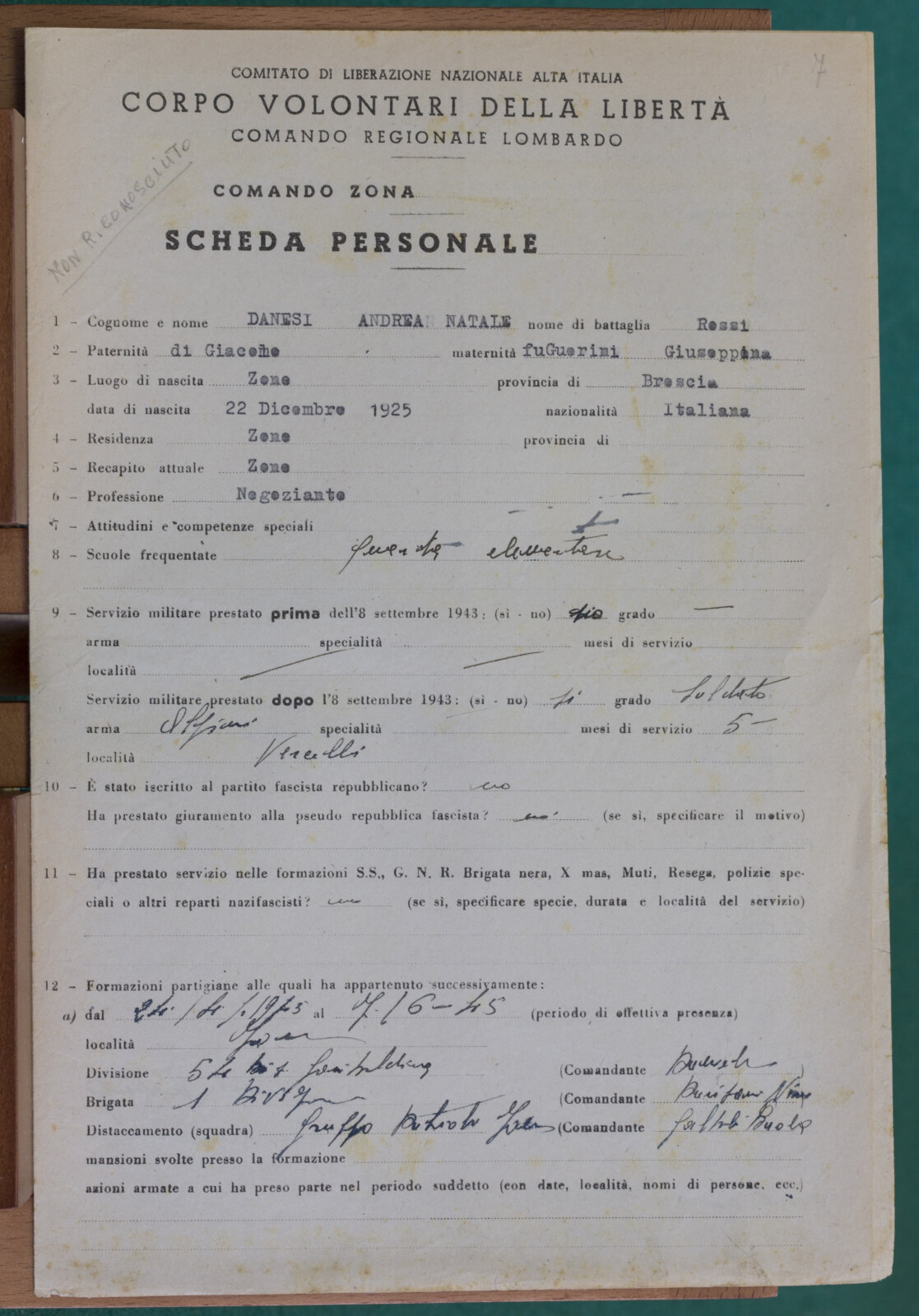 DANESI ANDREA - Partigiano non riconosciuto