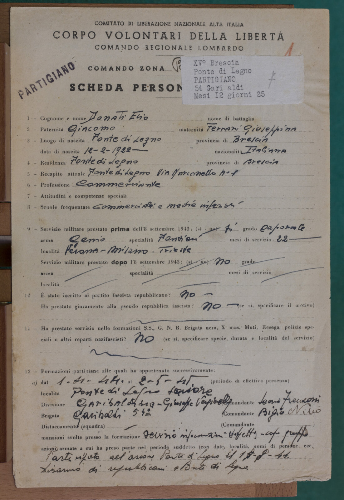 DONATI ELIO - Partigiano