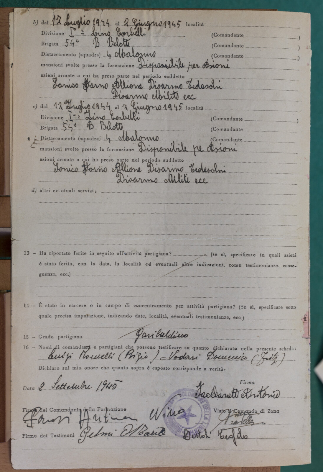GELMINI STEFANO - Partigiano