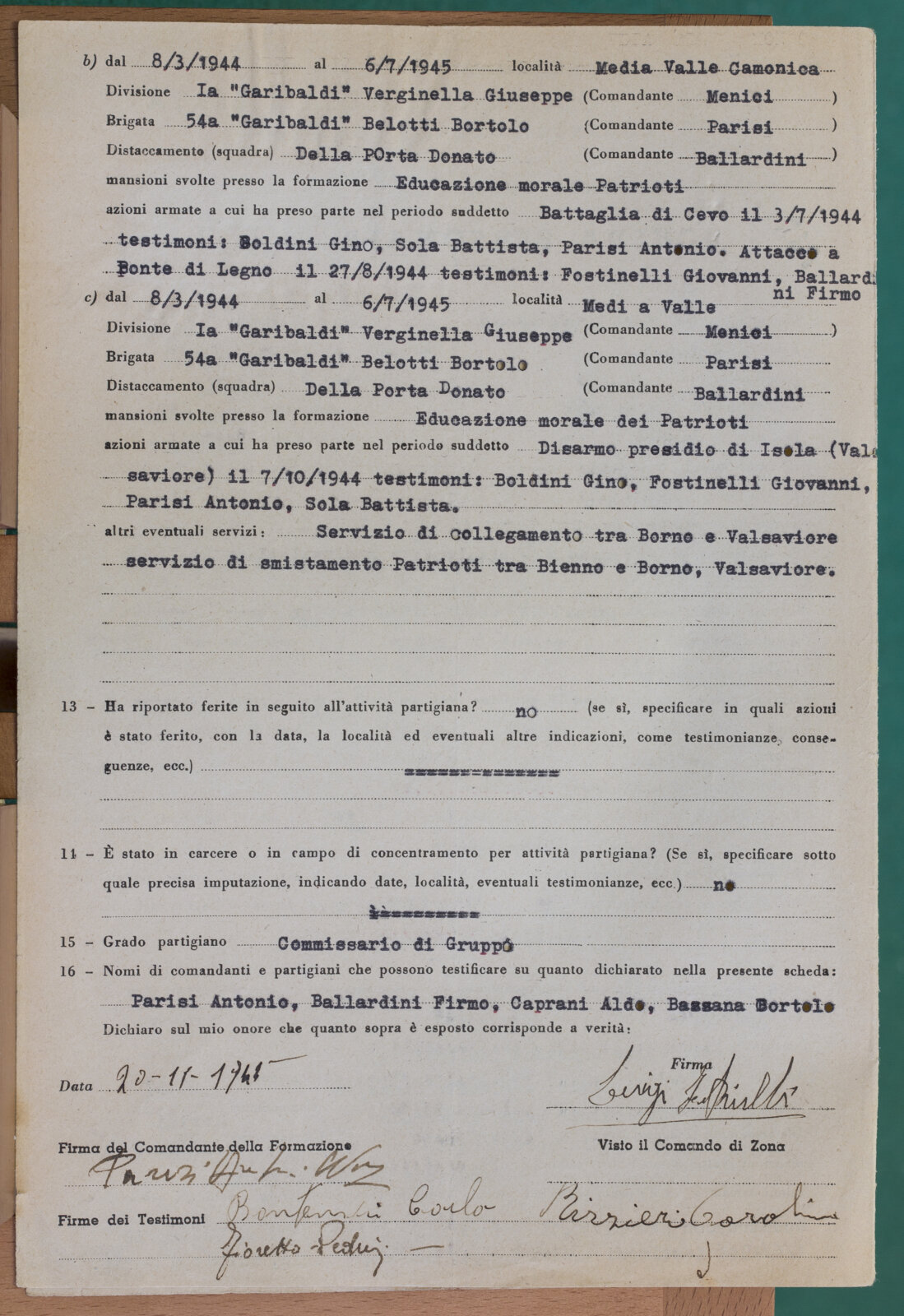 BONOMELLI MARCO - Partigiano