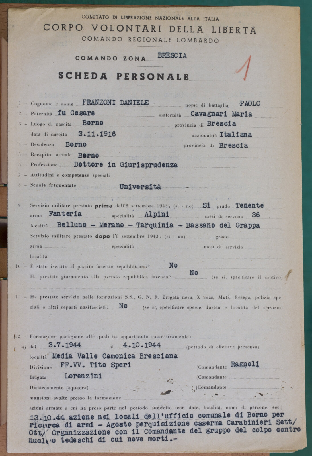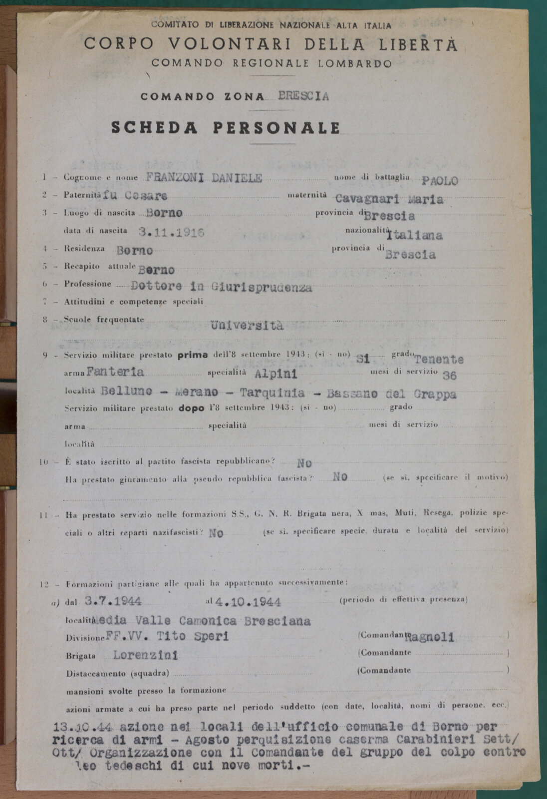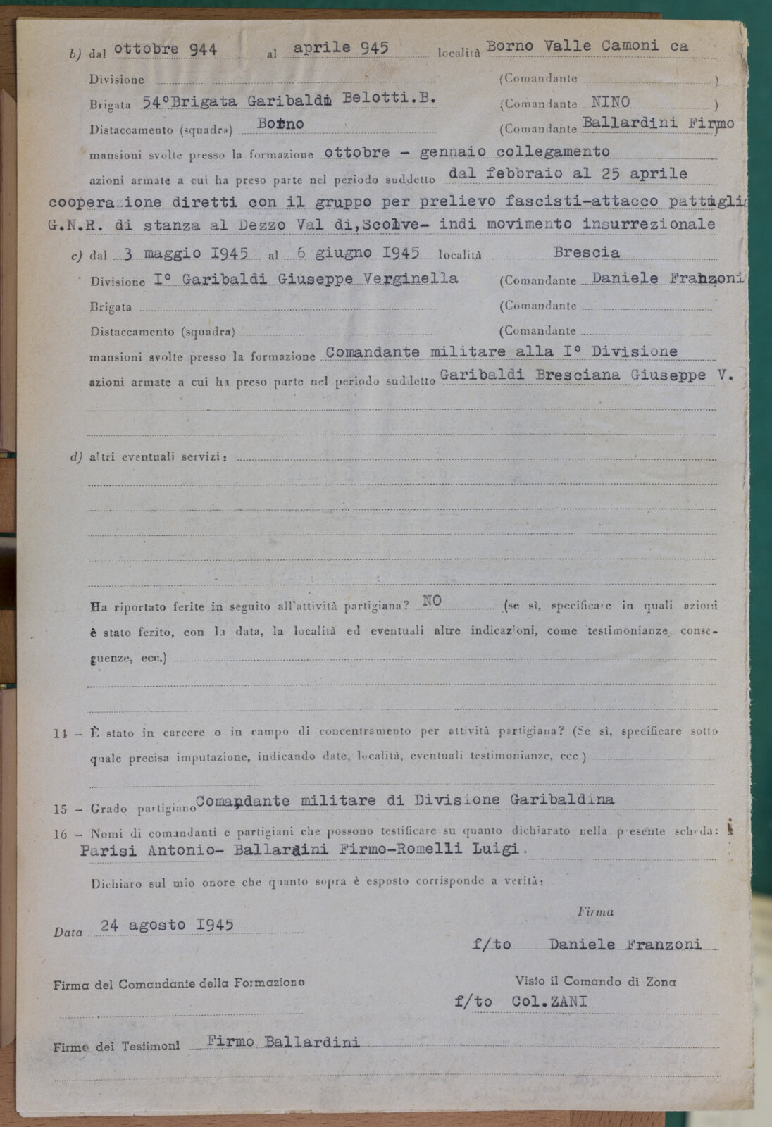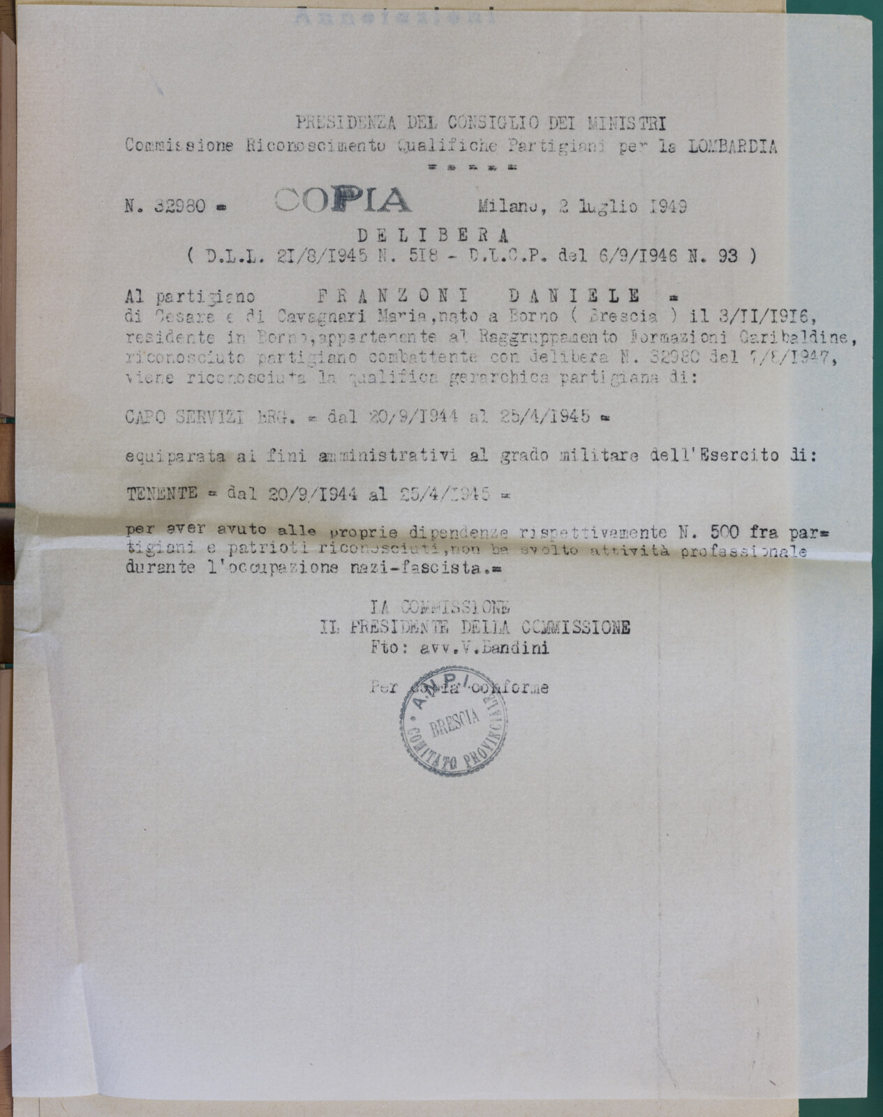 PAROLARI GIOVANNI (05-03-1918) - Partigiano