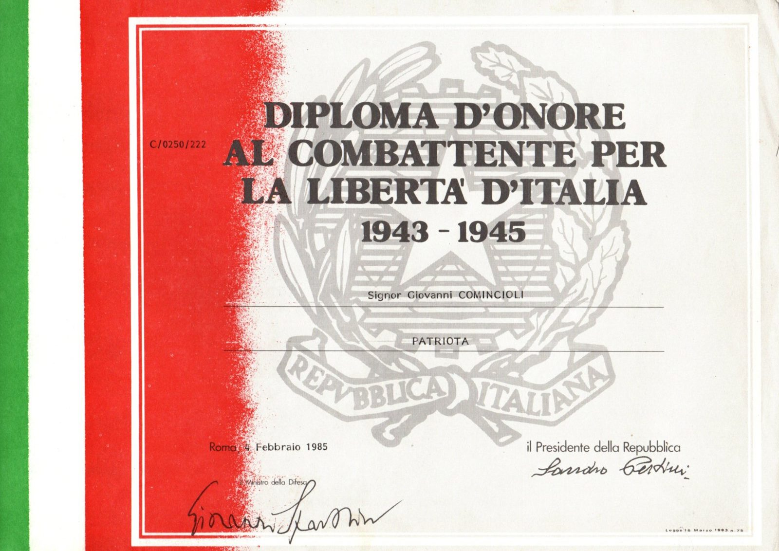 COMINCIOLI LUIGI- PARTIGIANO