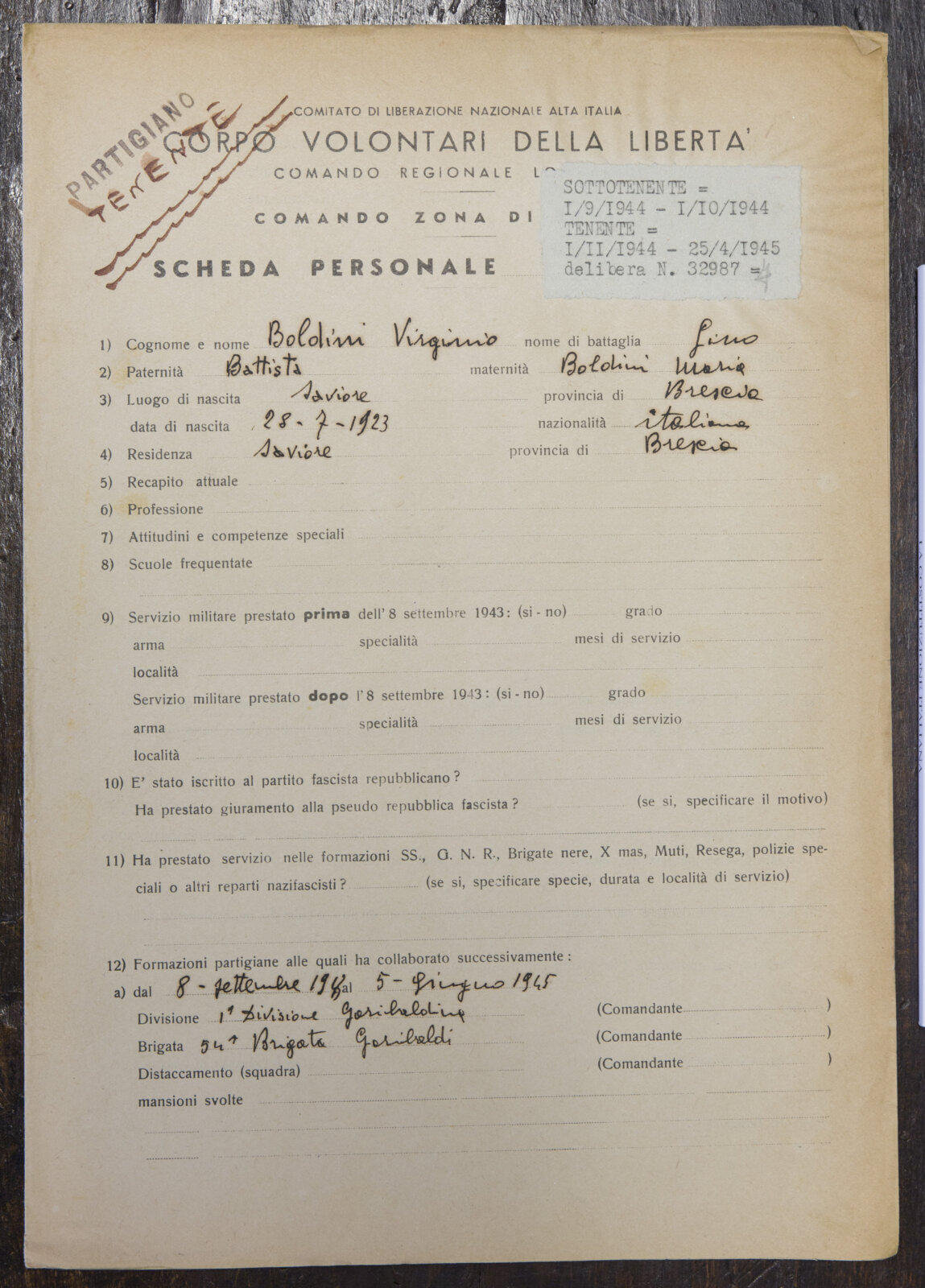 BOLDINI VIRGINIO - Partigiano e Sergente