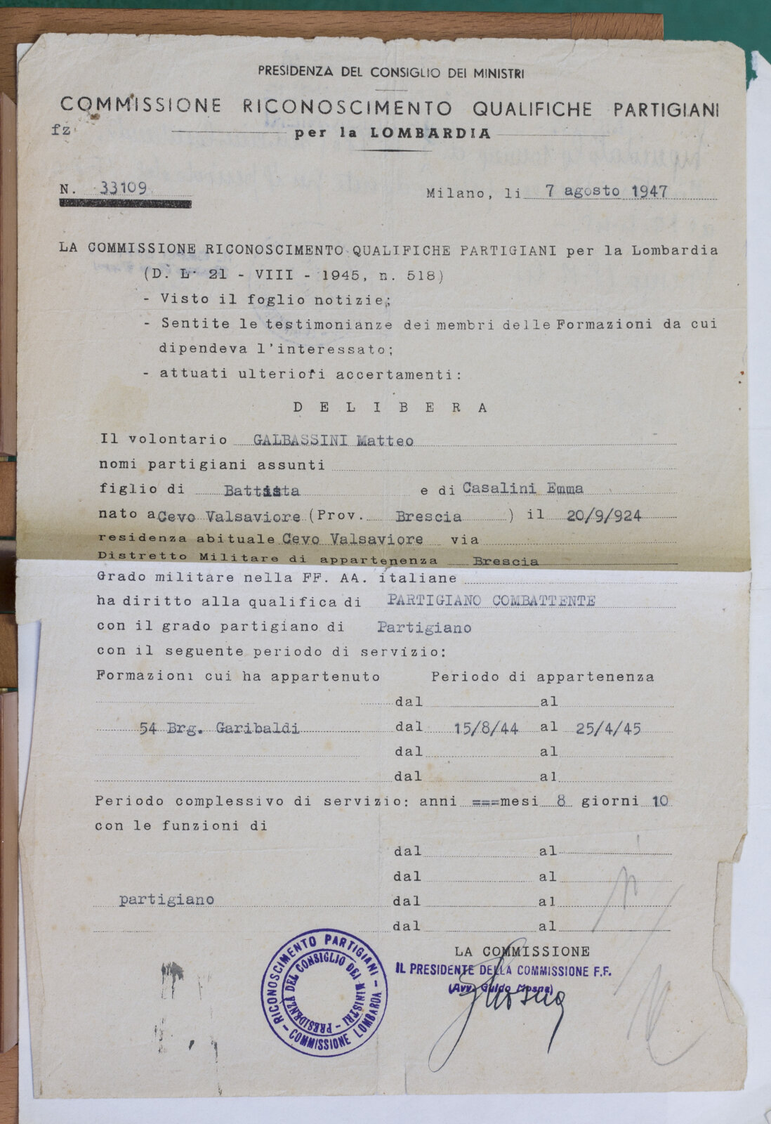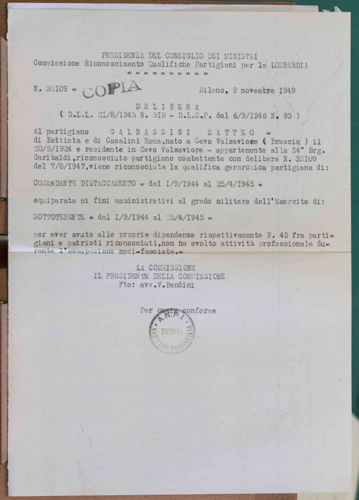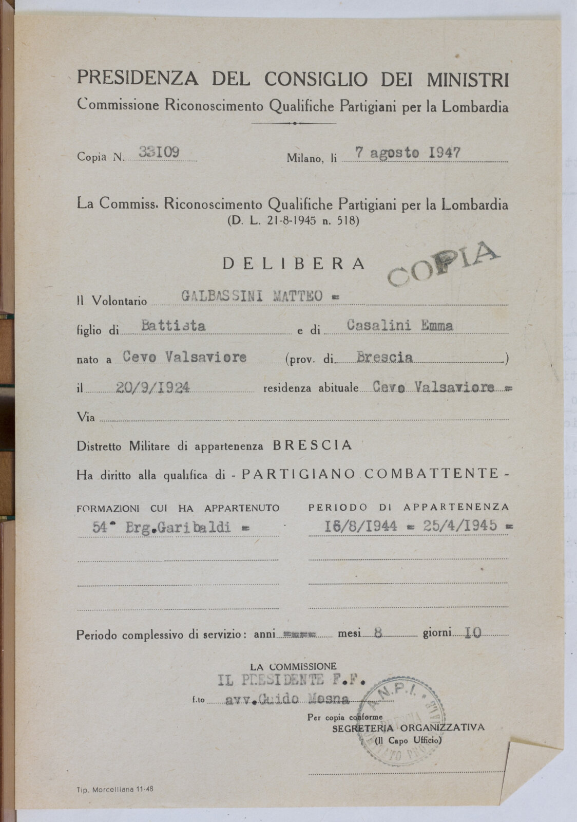 BONOMELLI GIOVANNI (MANISA)- PARTIGIANO