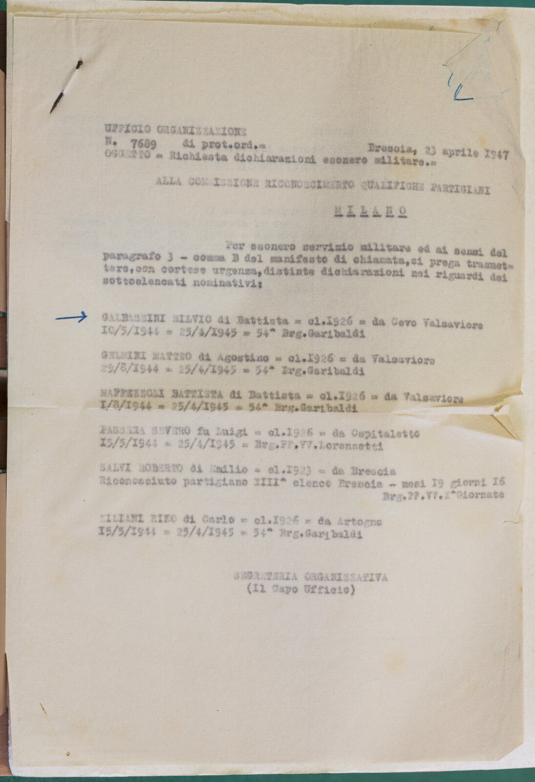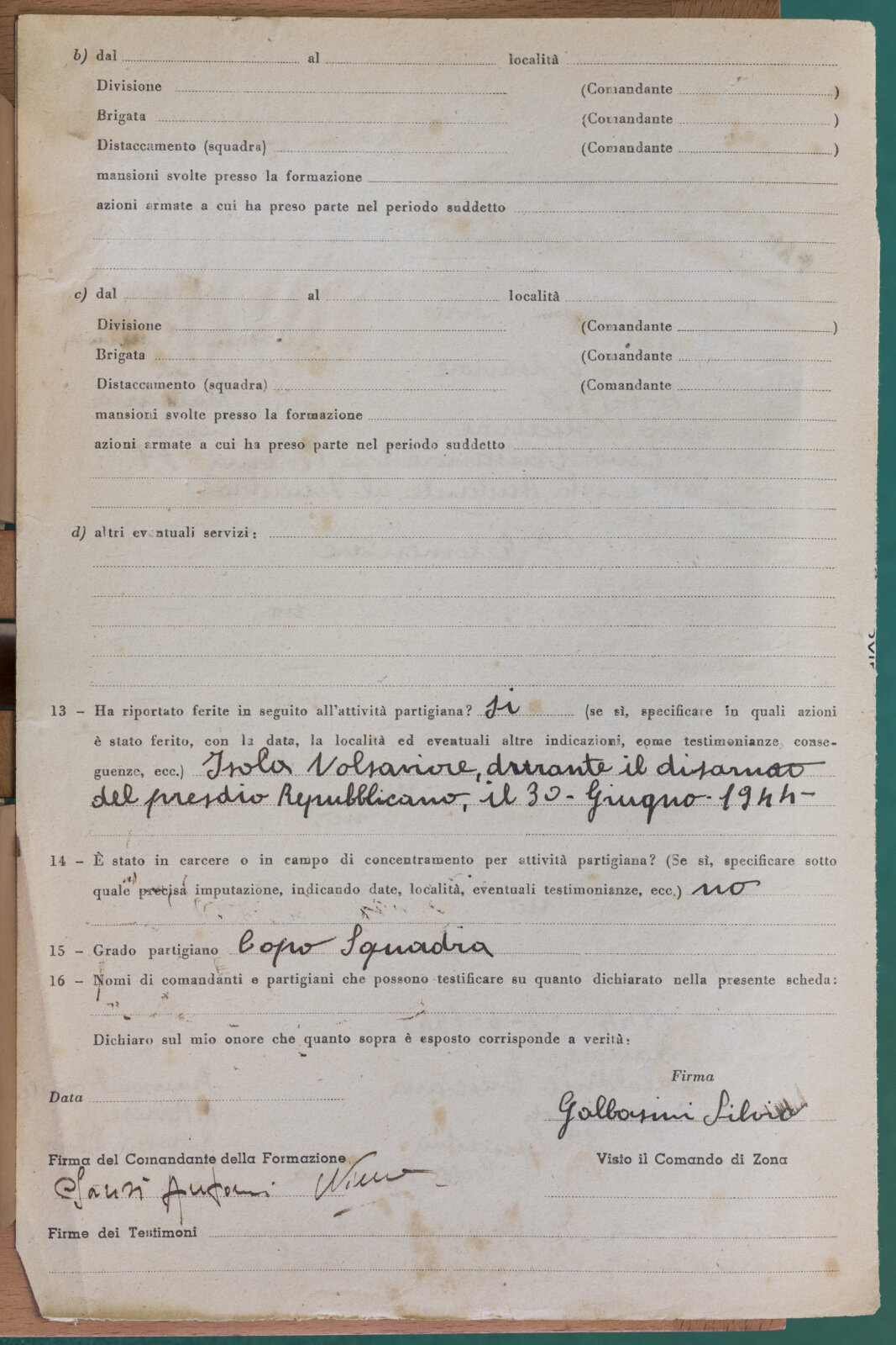 GALBASSINI SILVIO - Partigiani