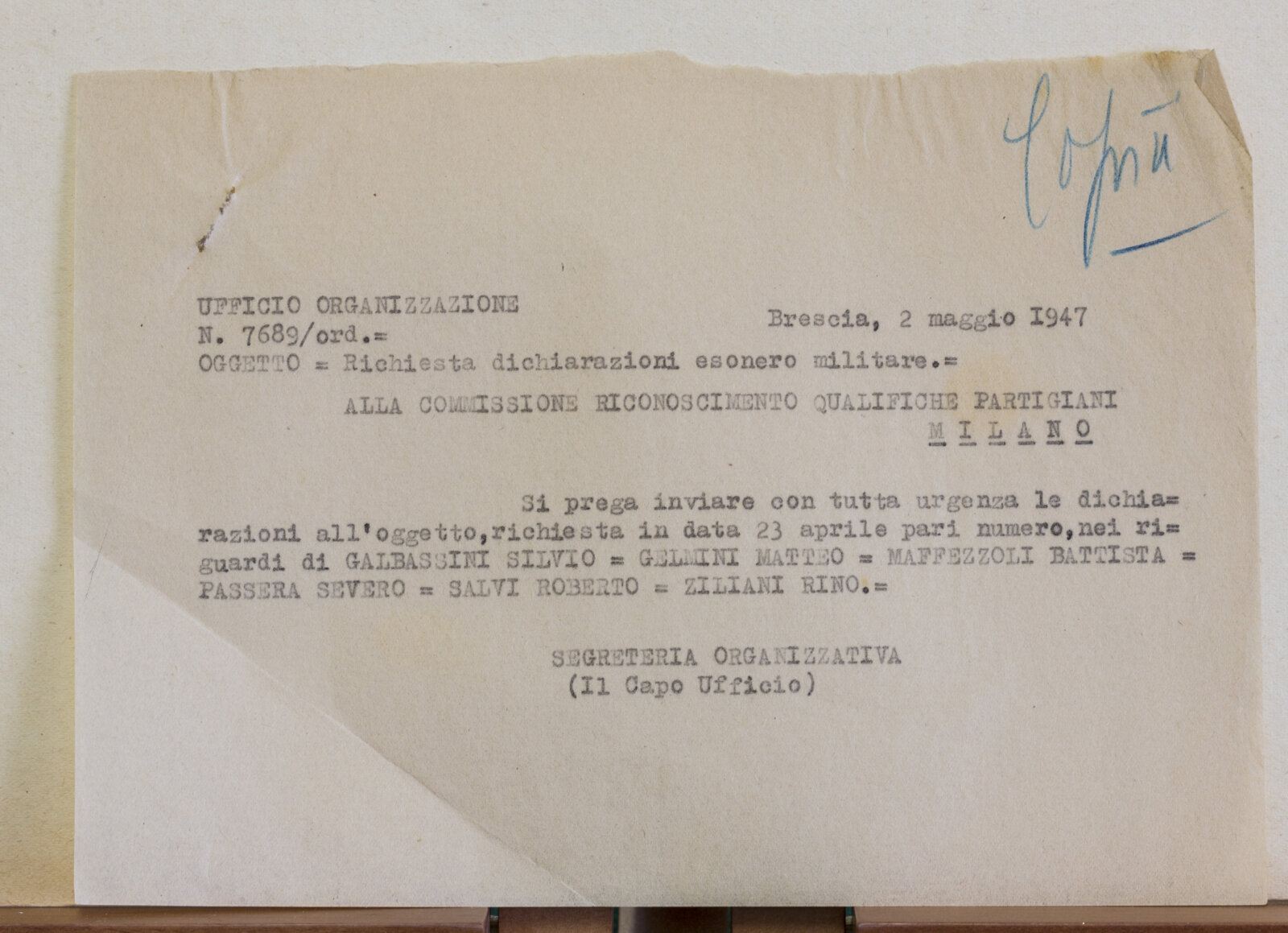 BONOMELLI DON VITTORIO - Partigiano
