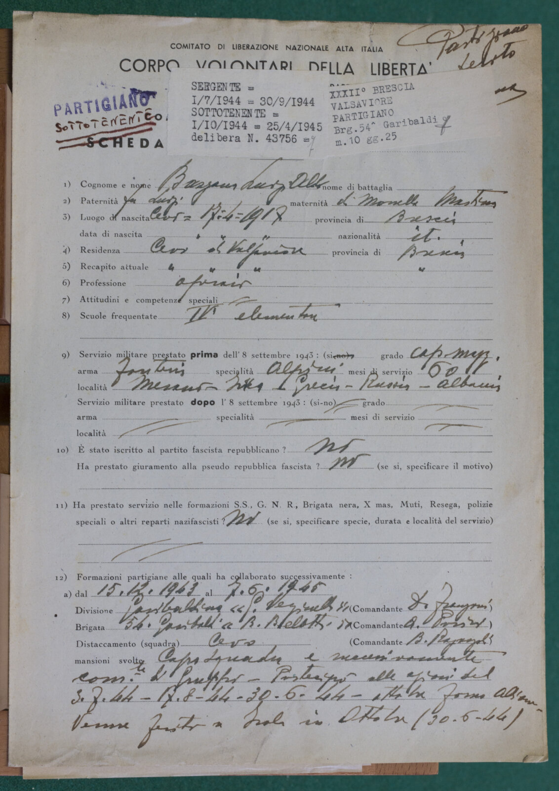 BAZZANA LUIGI ALDO - Partigiano e Sottotenente