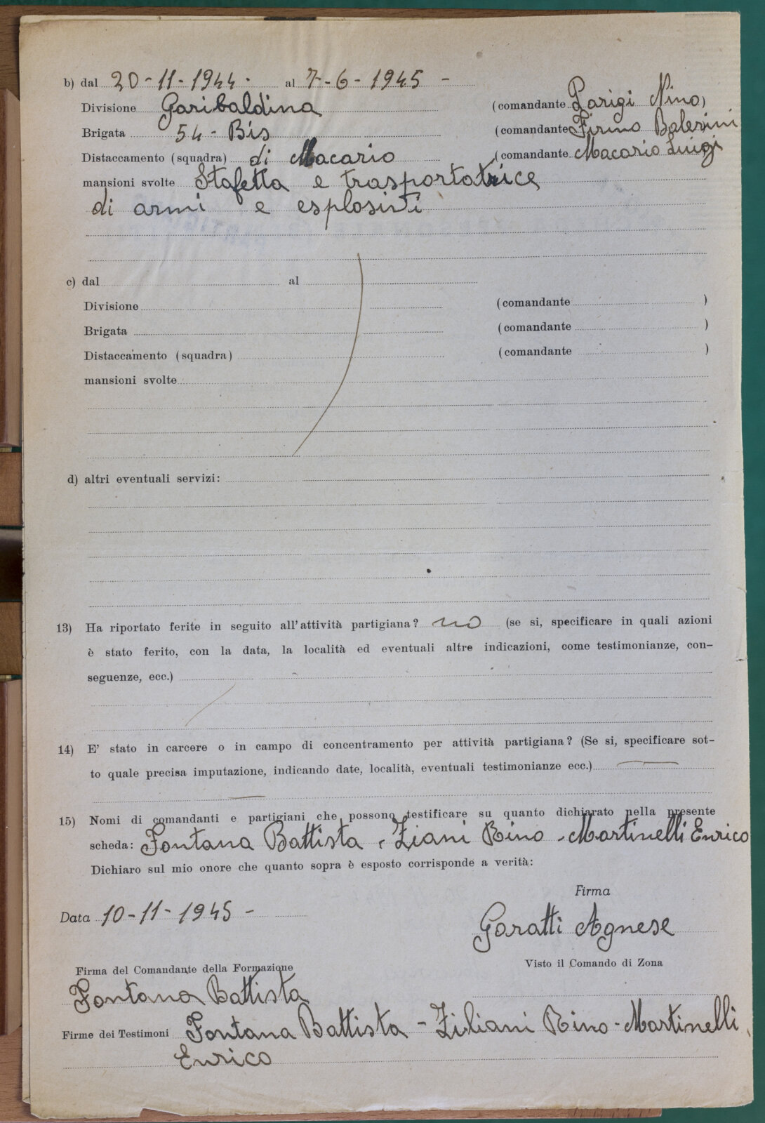 ZAFFAGNI MARIA - Partigiana non riconosciuto