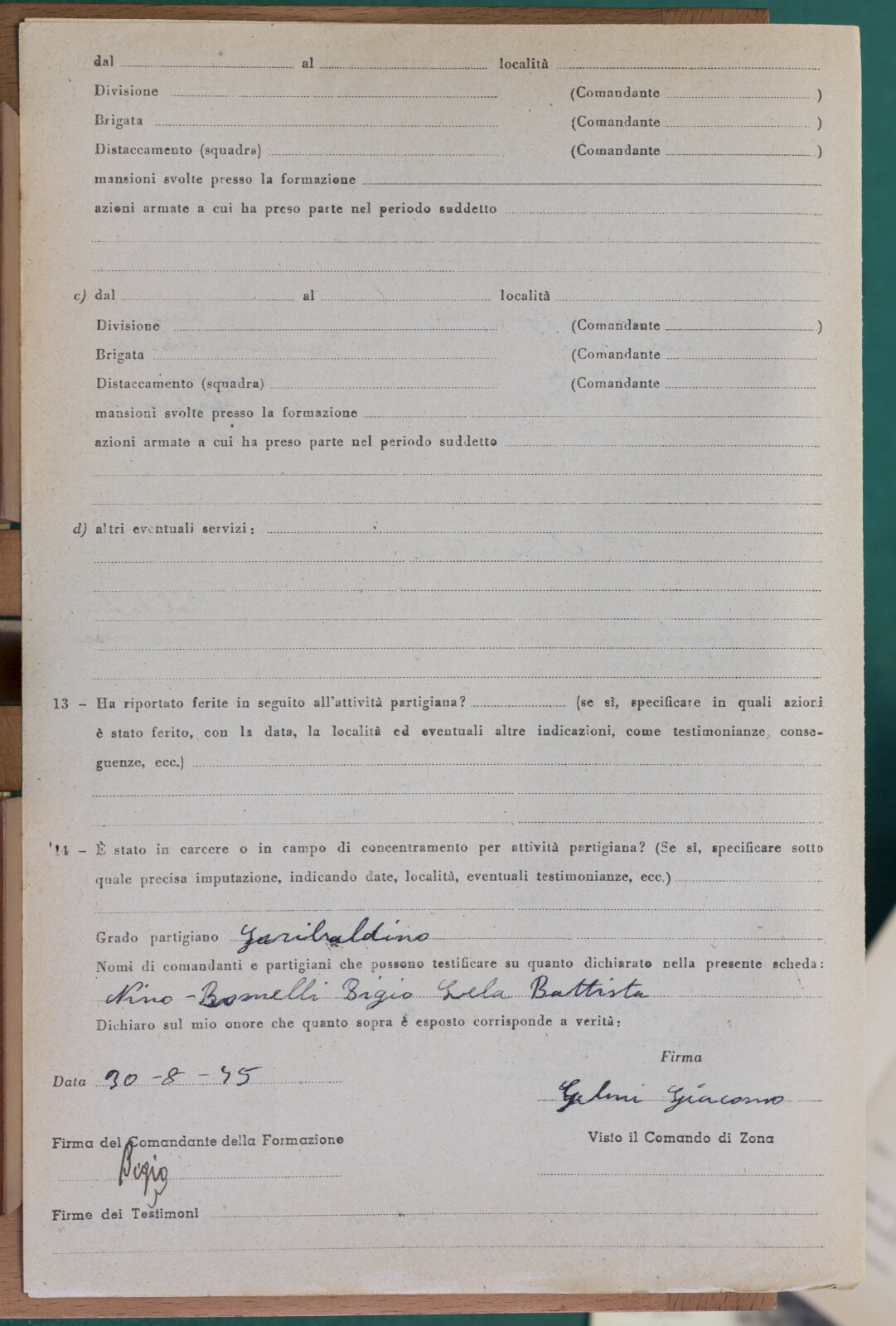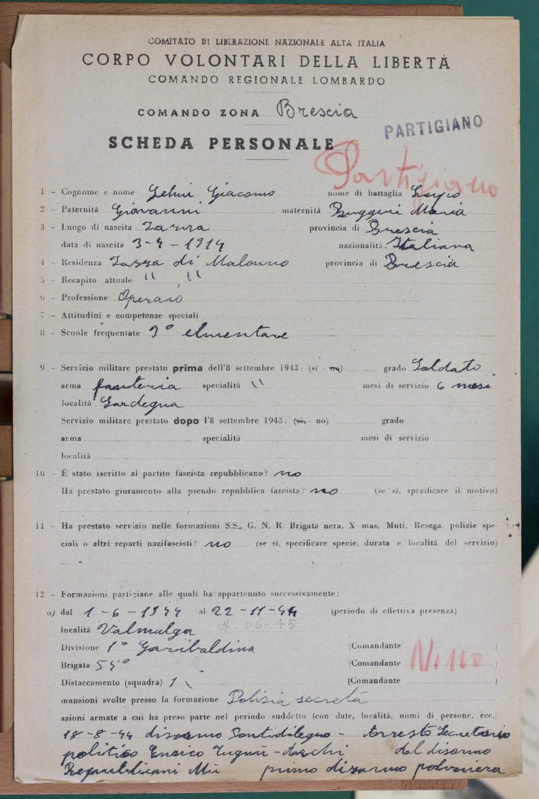GELMI GIACOMO (04-04-1914) - Partigiano