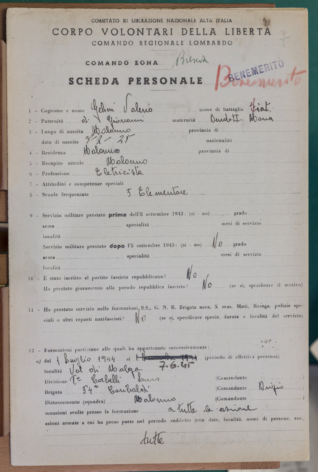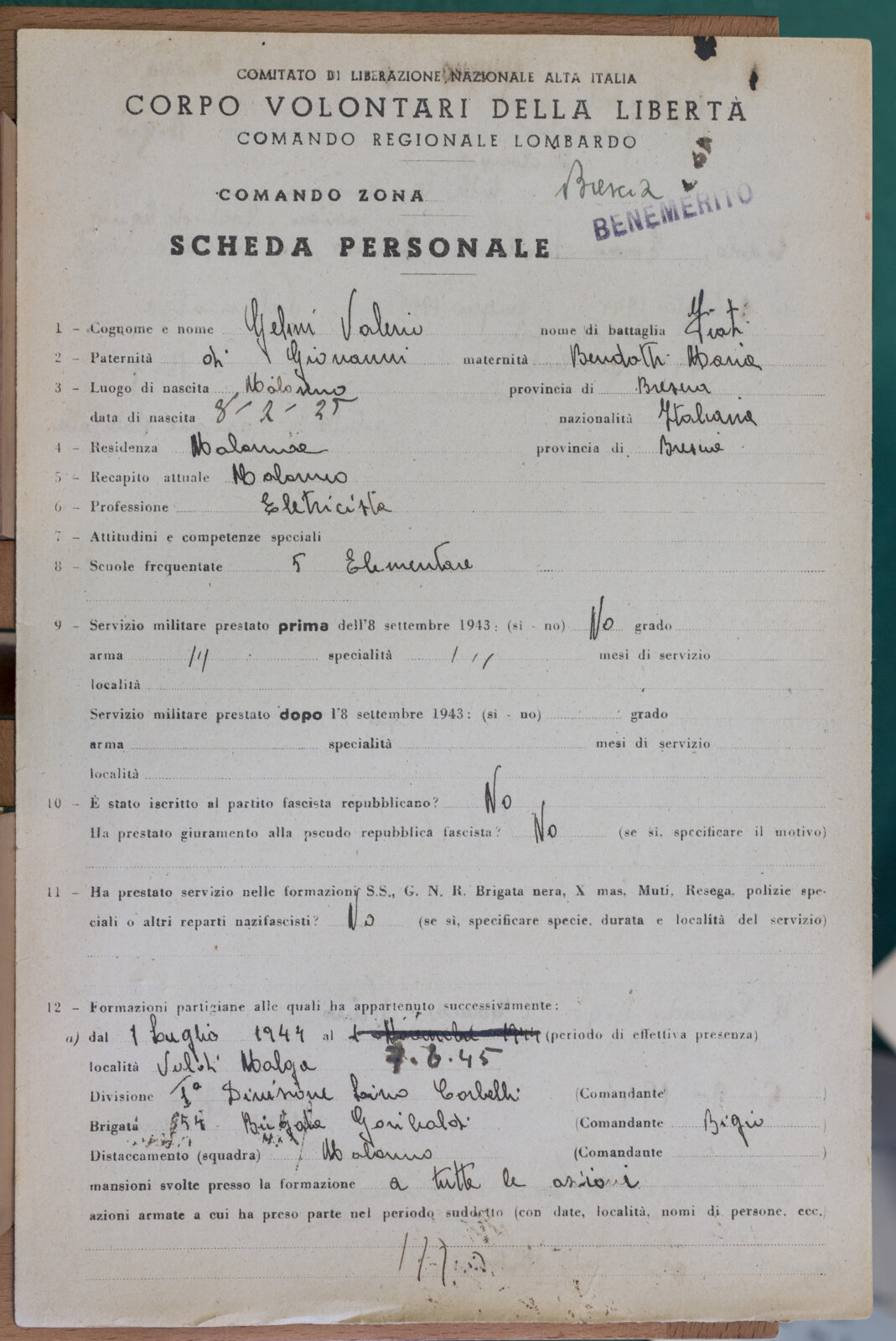 GELMINI VALERIO - Partigiano
