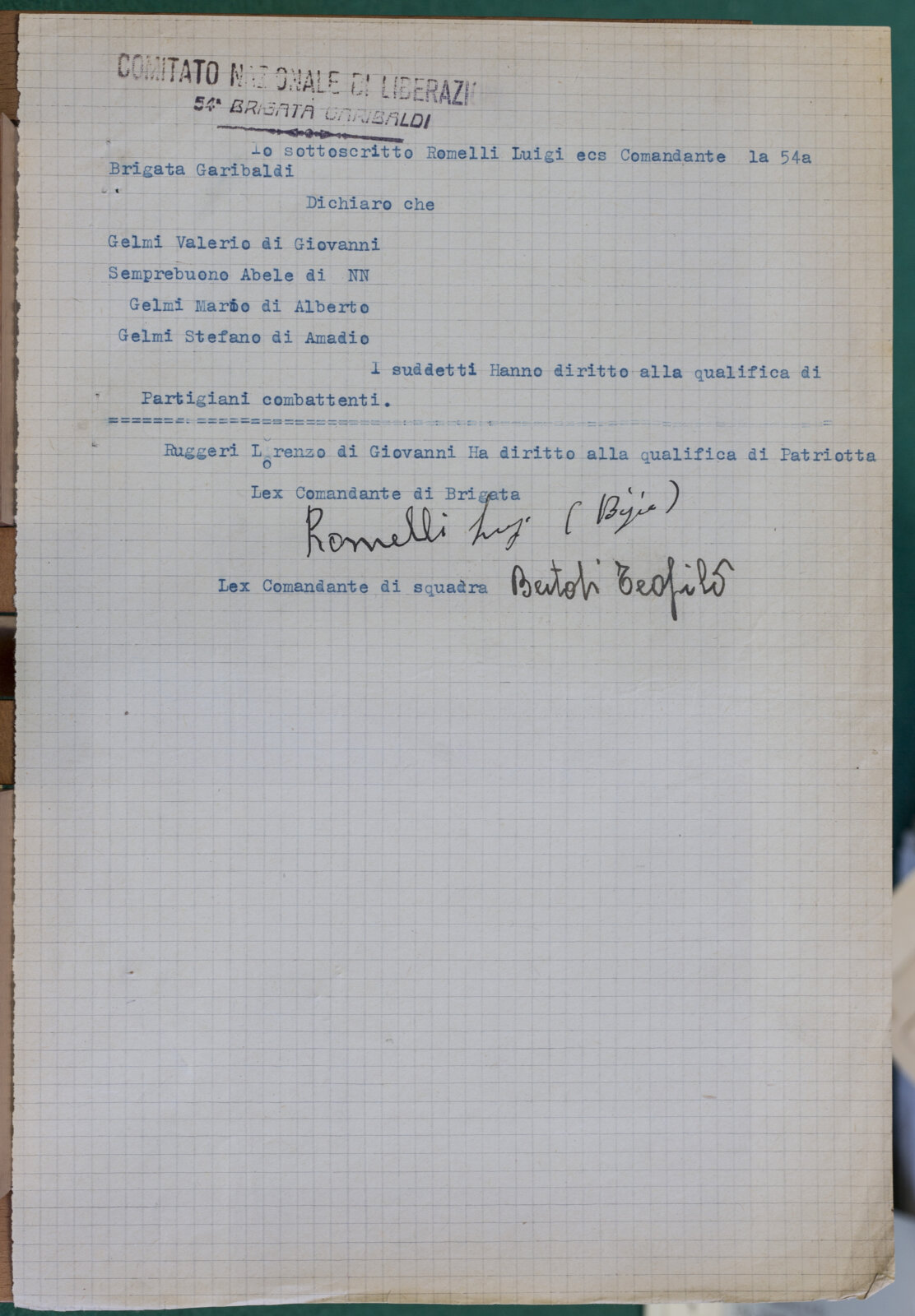 MORELLI BATTISTA - Partigiano e Patriota