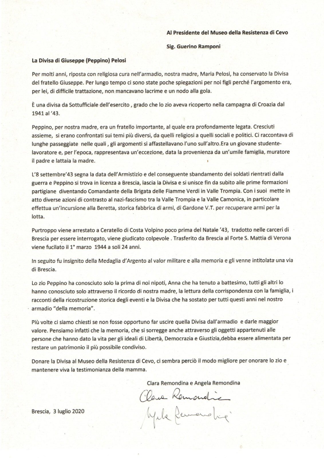 Fatto il ginnasio all’Arici e quindi passato alle magistrali, si era iscritto all’Università di Urbino. L’8 settembre si trova in licenza nella sua terra bresciana tutta in fermento dopo lo sbandamento del 1943, dove si registra una specie di assembramento di uomini, a cominciare dalla fine di settembre, a cavallo tra la Val Trompia e la Val Camonica. Una vera e propria formazione di partigiani si era acquartierata alla Croce di Marone, tra italiani e stranieri fuggiti dai campi di concentramento, sistemati su per le baite e le cascine, mentre nella principale delle due osterie si era insediato il comando, in una posizione imprendibile, date anche le mitragliatrici di cui disponeva. Buona parte delle armi di cui disponeva il rifugio erano frutto del colpo di mano ardito una notte da Peppino Pelosi ai magazzini Beretta di Gardone Val Trompia, rapidamente vuotati e il cui prezioso materiale, aveva preso la strada verso la Croce di Marone. Tra i ribelli per scelta, determinazione e sacrificio, come Rolando Petrini e lo stesso Pelosi, vi erano lassù anche individui come il Martini, un tenente milanese, attorno al quale si disposero gli elementi più deboli, i meno dotati ma pronti furbamente a sfruttare la situazione per ricavarne facili guadagni, senza nessuno scrupolo, compromettendo l’assunto stesso della Resistenza. Quando i fascisti e i tedeschi salirono per snidare la formazione, la banda di Martini non mosse un dito, non sparò un colpo…Così dopo aver combattuto con ben pochi elementi, tra cui con accanimento particolare i polacchi, Pelosi scese da solo ad incontrare un brigadiere e due carabinieri, mandati dai tedeschi a chiedere la resa minacciando rappresaglie su Gardone in caso di nuove imprese e, una volta disarmati, li rimandò a riferire che nessuna nuova impresa sarebbe stata fatta dai ribelli ma che, se volevano la resa, dovevano salire a prenderli!
