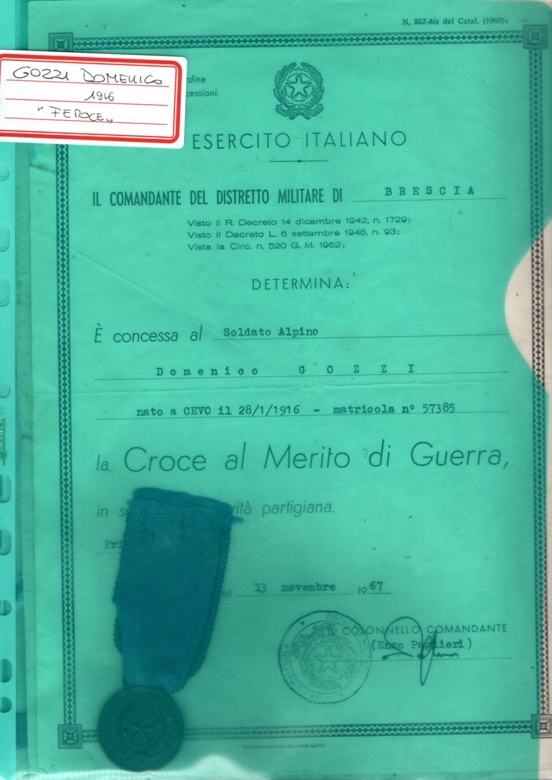 GOZZI DOMENICO (FEROCE)- PARTIGIANO