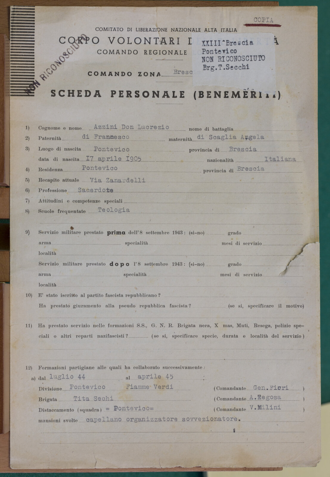 AZZINI DON LUCREZIO - Partigiano non riconosciuto
