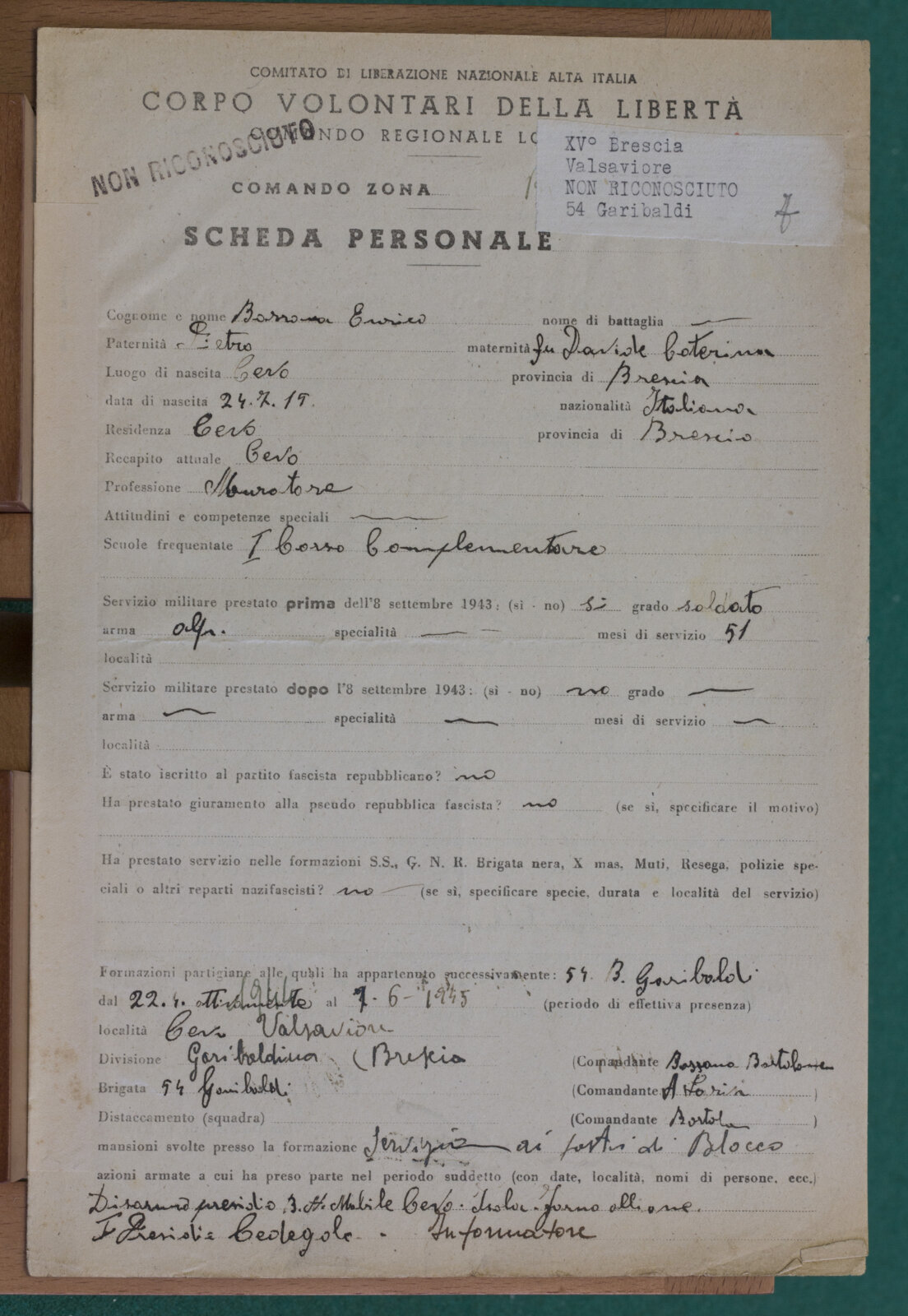 BAZZANA ENRICO (24-07-1915) - Partigiano non riconosciuto