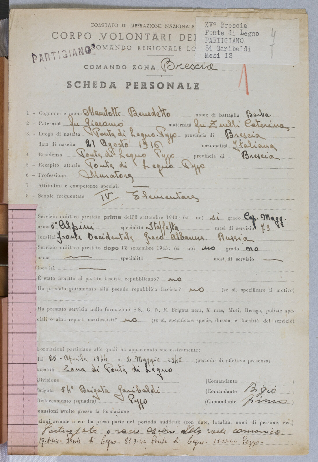 MACULOTTI BENEDETTO - Partigiano