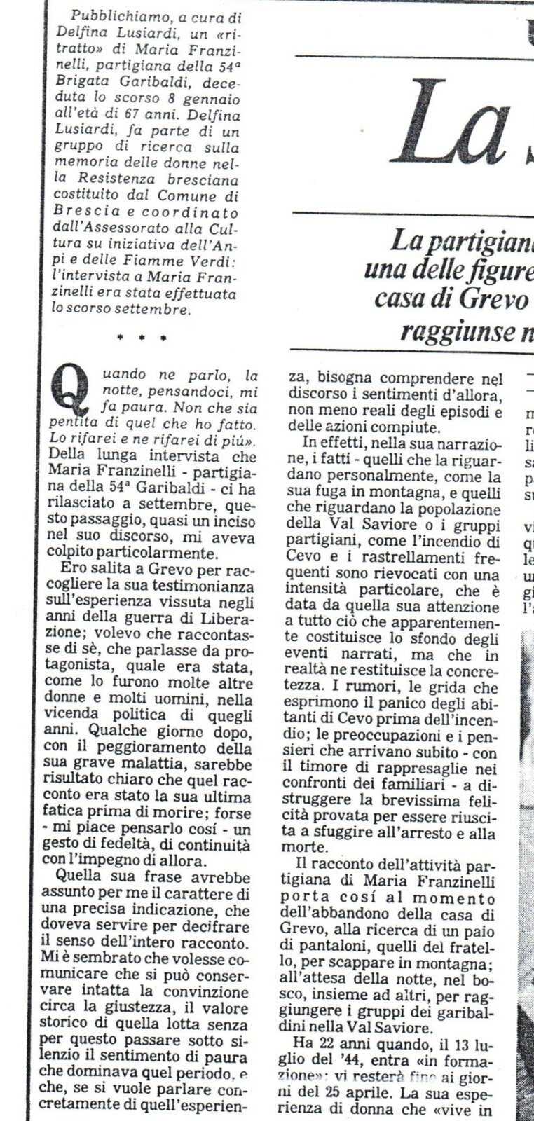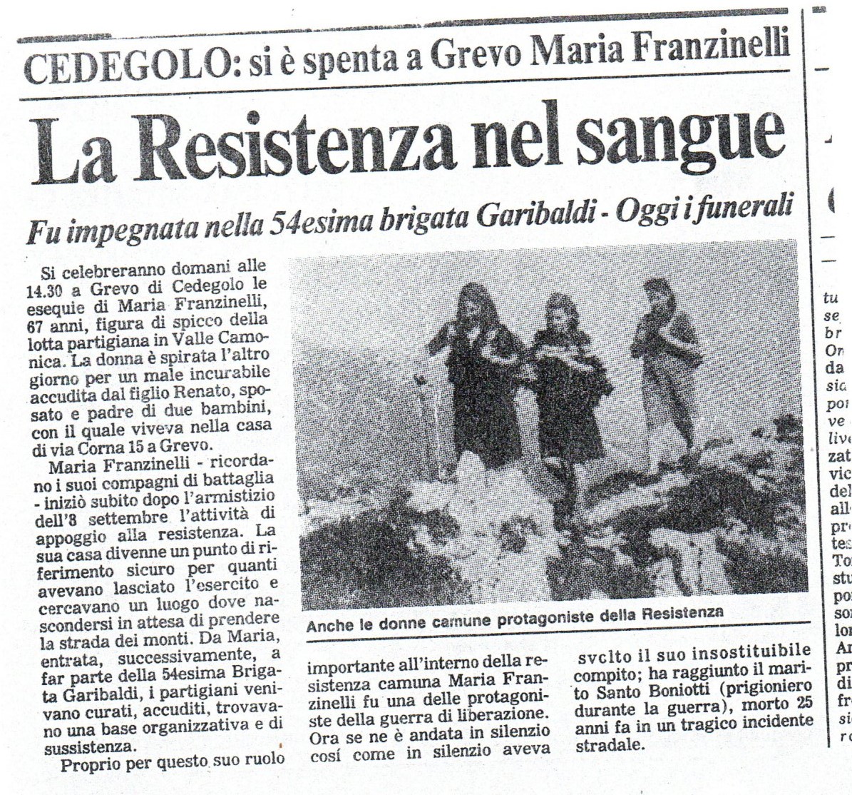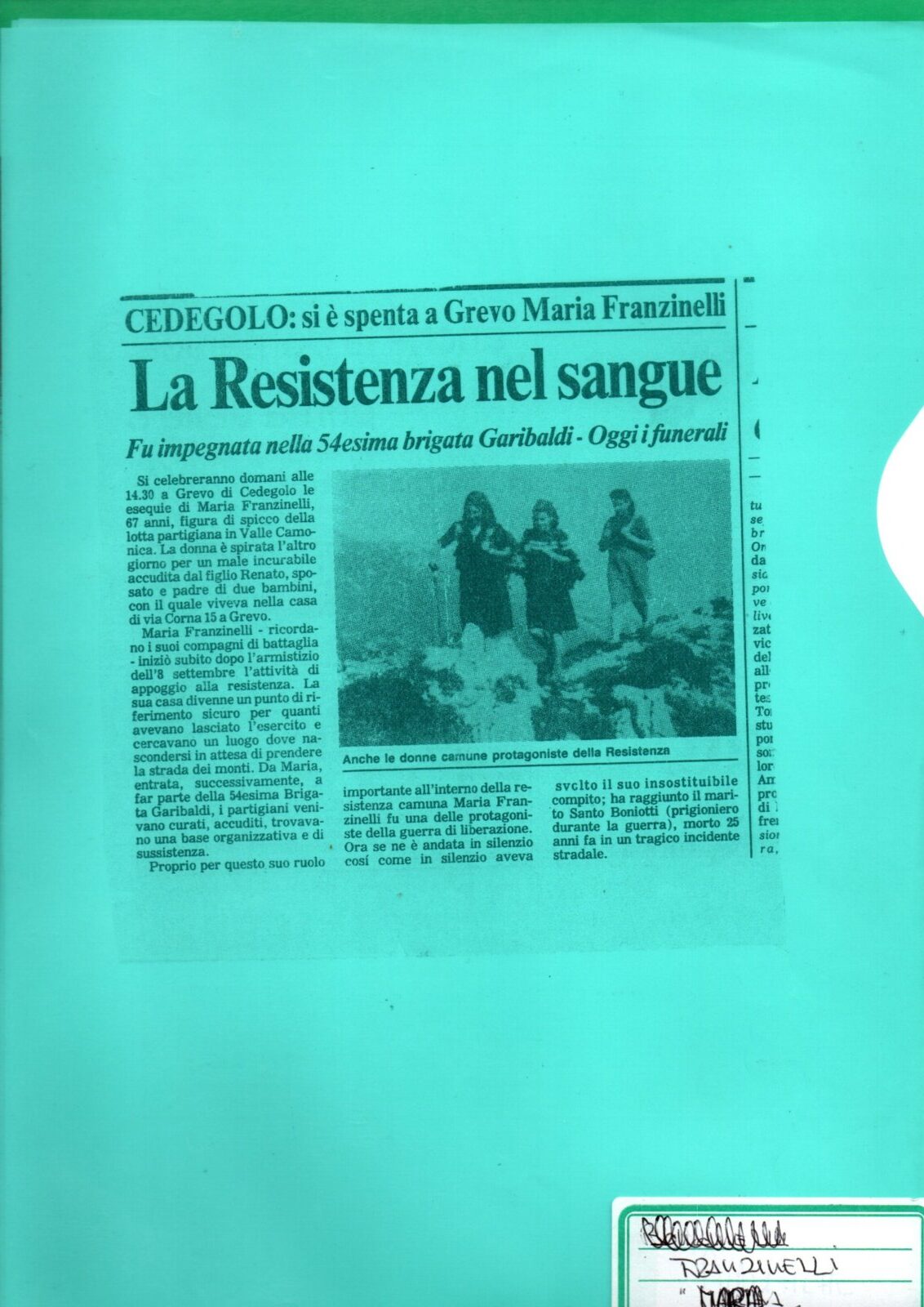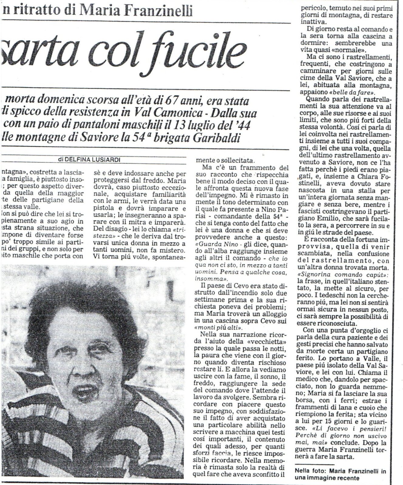 Alta Valle Camonica. Individuata dai repubblichini, è costretta a darsi alla macchia e a riparare in montagna dove svolge, fino alla