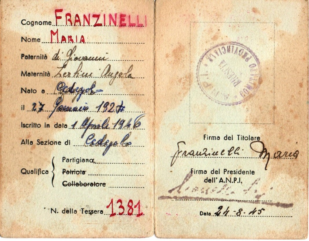 Liberazione, il compito di addetta alla segreteria del Comando della 54a Brigata Garibaldi, partecipando direttamente alla vita e alle attività di formazione. Dopo la guerra svolge la professione di sarta.
